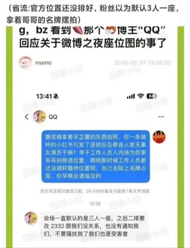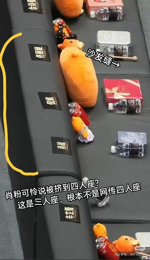 肖粉历年一向重视座位,对这方面很上心。提前不知道具体座位号,就放在那摆拍了。而官方放名字位置之后,完全就是正常的三人座。(无桃宝玩偶也是力证)但由于提前摆拍的照片,一口咬定就在那。