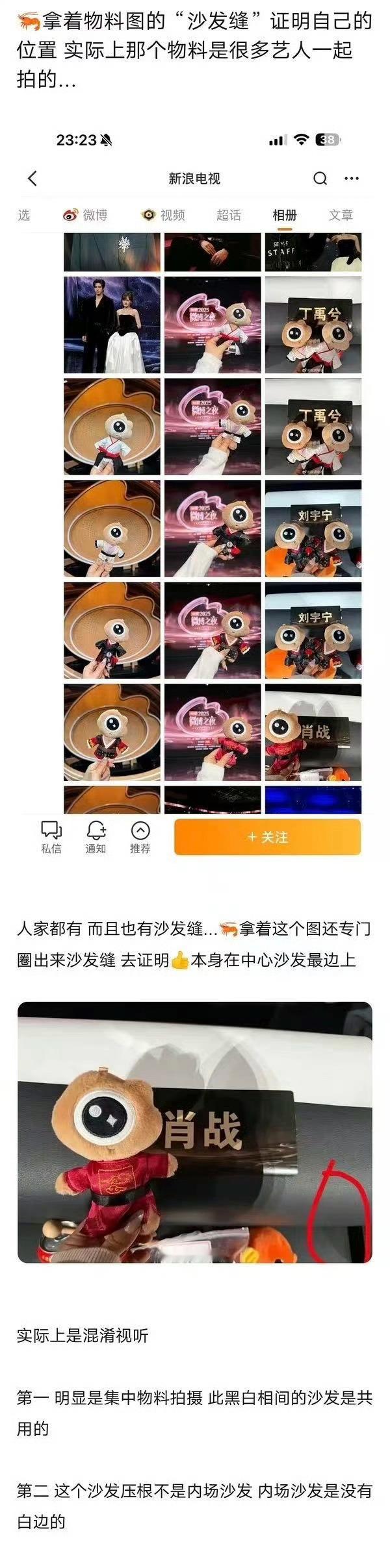 微博之夜致歉 这次如果是其他非流量女星,就让肖家说啥是啥了。其实肖战粉丝应该自证,所谓原始座位的证据到底在哪?以及到底有何证据看见是谁换的名字?他家所谓的原始座位,是不是来源只有全网仅两个人发过的局部图?一个是他粉丝🍠Q发的,一个是所谓新浪电视发的(新浪电视的被证明不是同一个沙发拍的,同时拍了很多艺人的)总之那也就是全网只有的证据就是一张局部摆拍图,周围座位全空的,无任何人名字。