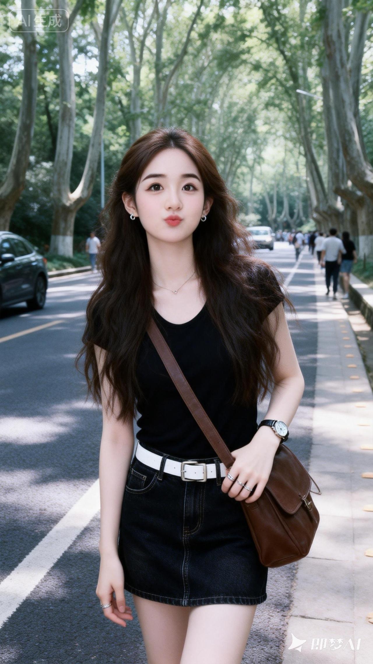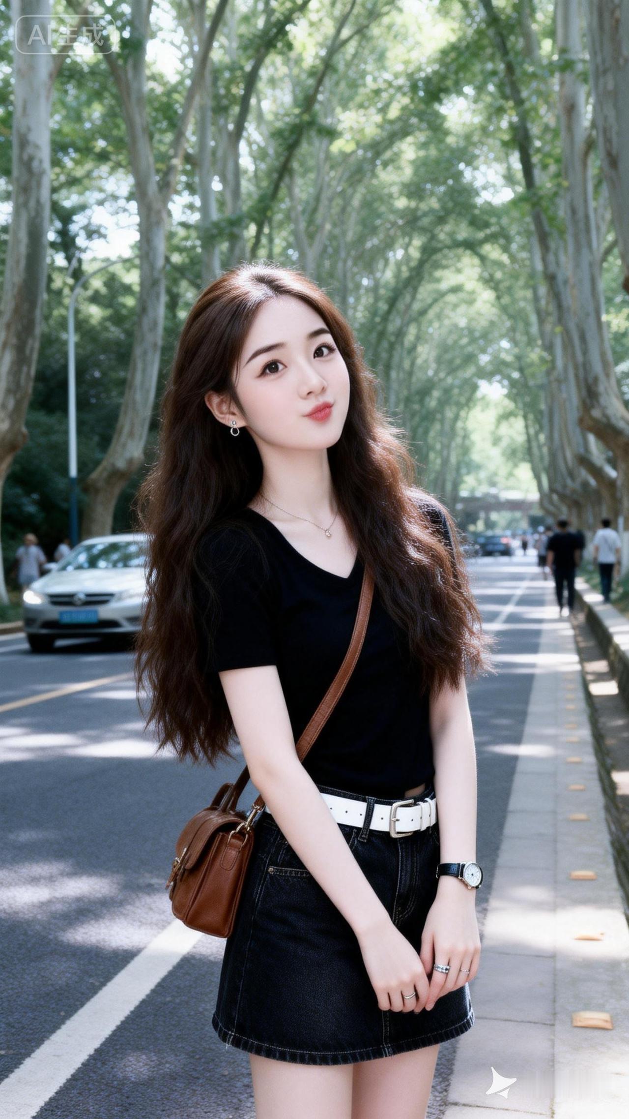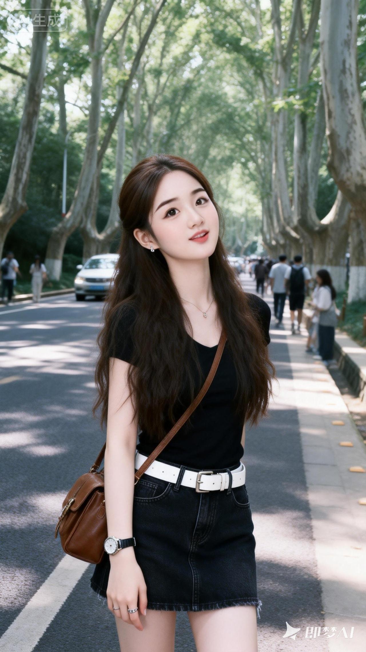 19岁美女,发丝柔顺有光泽,黑棕色长直发,浓眉大眼睛明亮有神,皮肤白皙,长卷睫毛