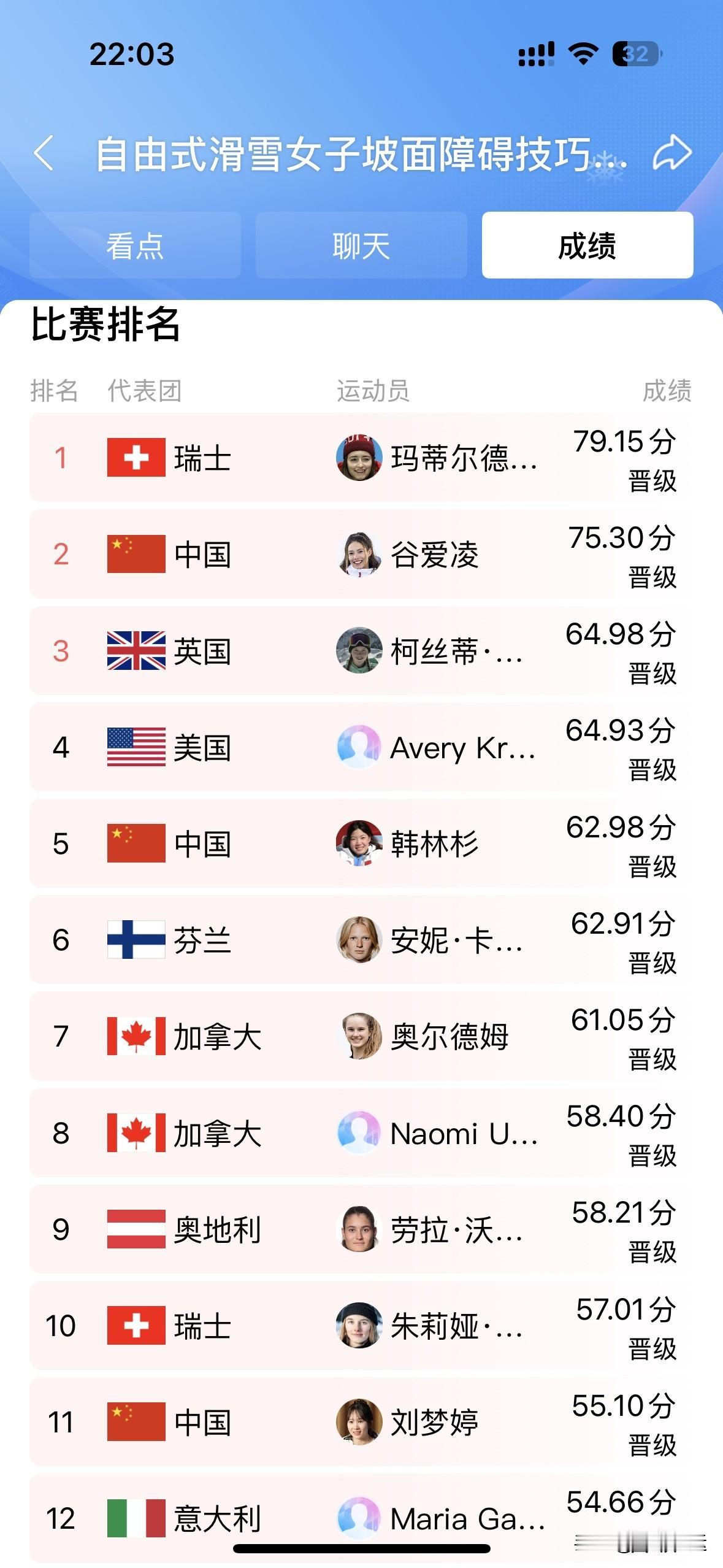 谷爱凌这状态简直绝了!首轮失利丝毫没影响她,次轮直接大爆发。在自由式滑雪坡面障碍赛里,她凭借出色发挥拿到75.3分,以第二名的好成绩顺利晋级米兰冬奥会决赛。比赛中,她的每一个动作都干净利落,在空中的姿态宛如一只灵动的飞鸟,稳稳落地时更是气场十足。首轮的小挫折仿佛成了她的动力燃料,让她次轮火力全开。真期待她在决赛中的表现,说不定又能给我们带来新的惊喜,咱就拭目以待她在决赛中继续大放异彩! 谷爱凌神图