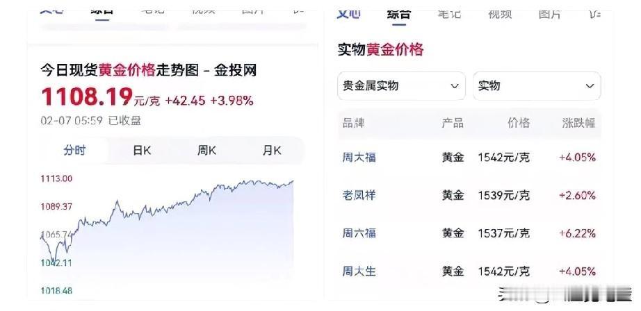以前我不相信炒黄金能挣钱,现在我信了。 2月7日,黄金金价又涨了。 实物黄金