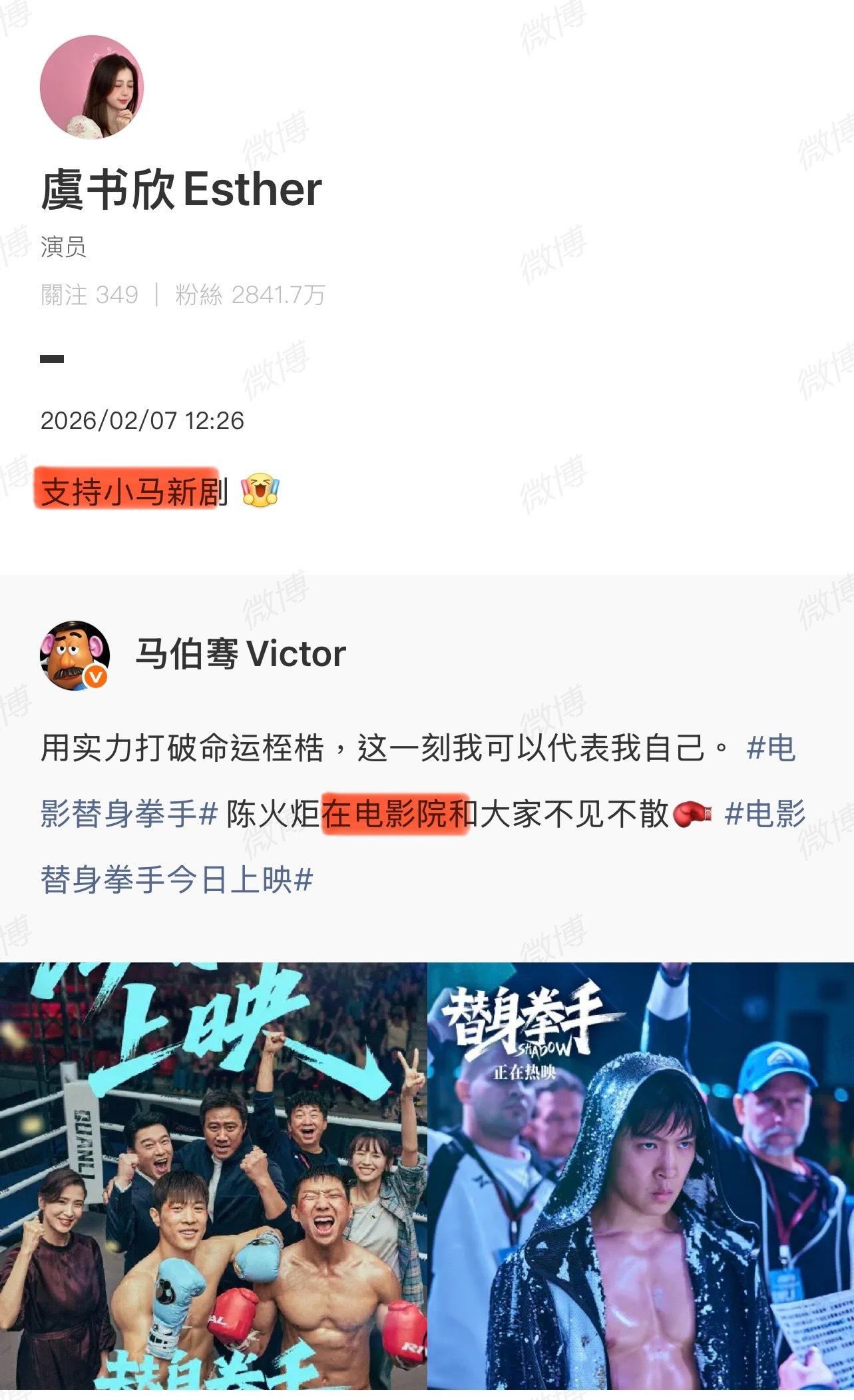 虞书欣也太敷衍了吧?马伯骞发的是电影,虞书欣转发说“支持小马新剧”! 马伯骞回关虞书欣