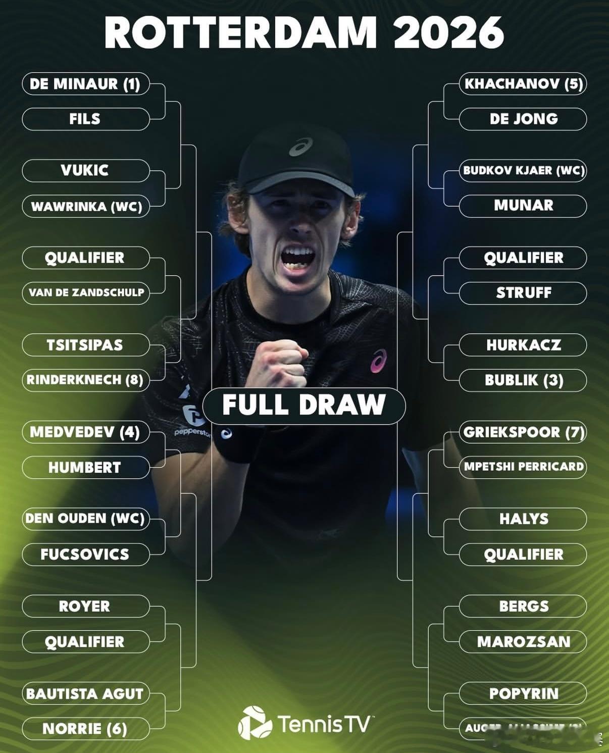 ATP500 荷兰银行公开赛正赛签表公布,德米纳尔、阿利亚西姆、布勃里克、梅德维德夫以前四种子出战,瓦林卡、西西帕斯、胡尔卡奇等球员也将参赛。
