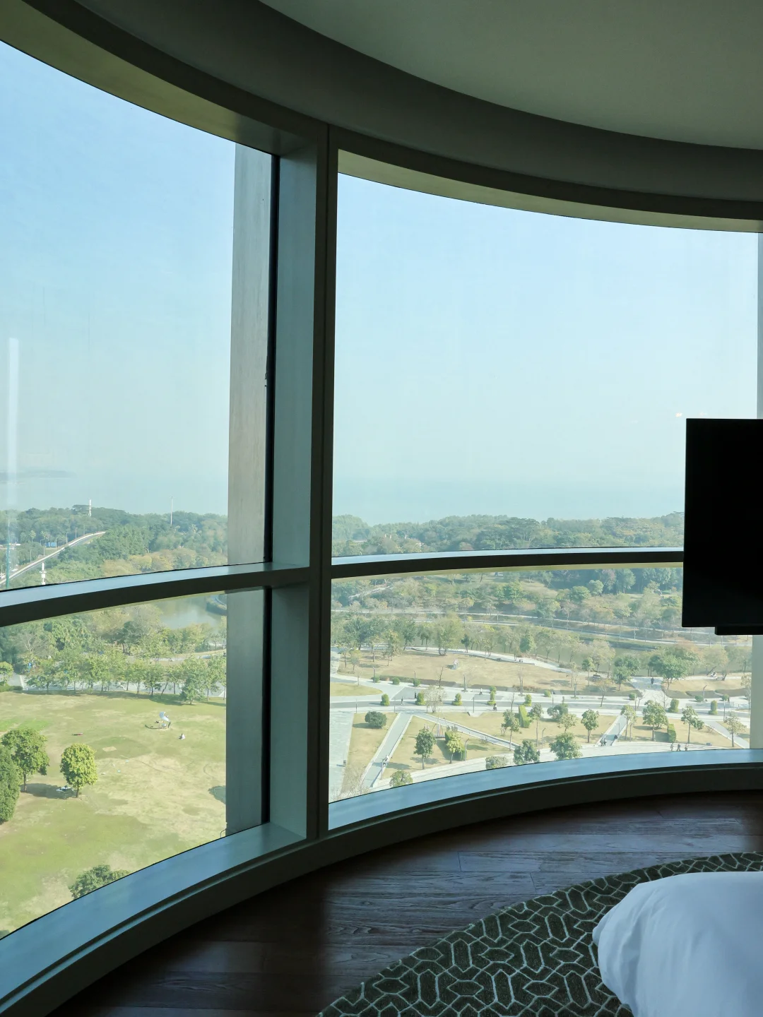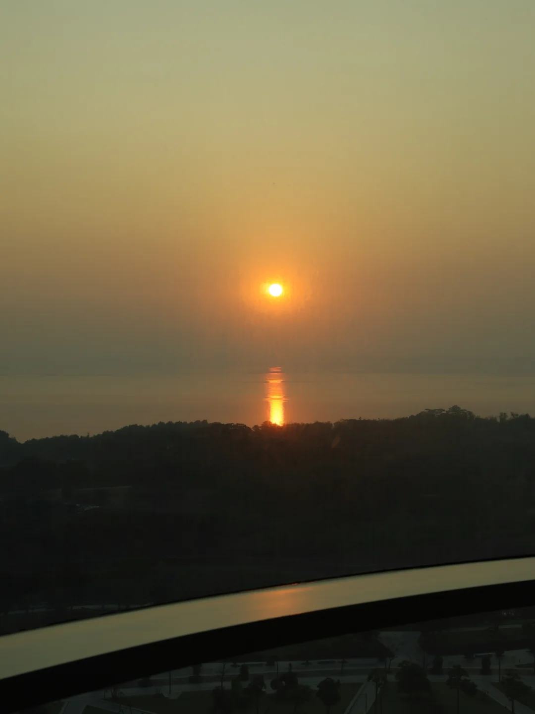 🧾20000积分换了一晚上深圳安达仕房间,城市海景房进来就是直观的人才公园与海,对于如此“牛马”的城市来说,这一片景观简直让人心旷神怡。 次日早上七点多起来,能直面看到一个如此直观的海上日出,真的好美😭为了看日出也会愿意再来住这的吧🤣 💡另外很喜欢1楼去前台化的大堂以及电梯间墙面的雅堂:古典绿的布置、恰到好处的悬浮吊灯带来的光源,亦或是抽象的手绘壁纸与棱角分明软装的组合,很舒服。
