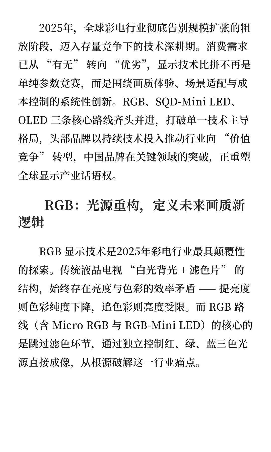2025彩电行业技术盘点:多元并行下的画质