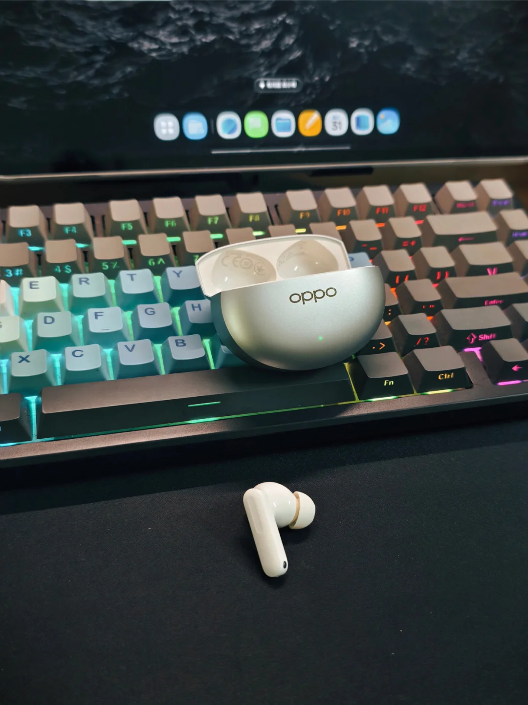 而想要半入耳式,追求长续航,用于日常学习办公,那可以看看OPPO Enco Air4新声版,虽然这款耳机没有主动降噪,但其整体续航时间比较长,从另一方面说,作为备用耳机也可以。