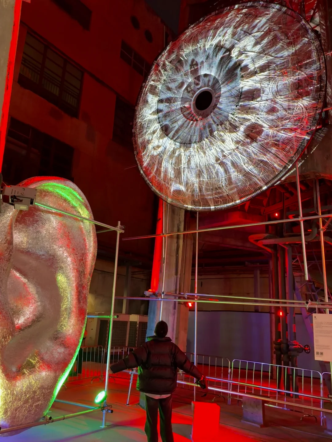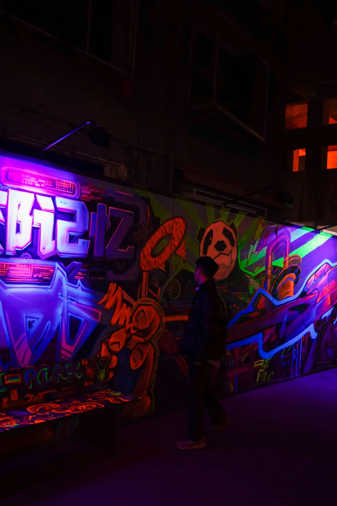 工业横街藏了7组互动光影装置,是一场声音与光影的互动,给人一场视听盛宴。我个人很喜欢「声音图像互动一装置」,光怪陆离,也是拍照出片的点。