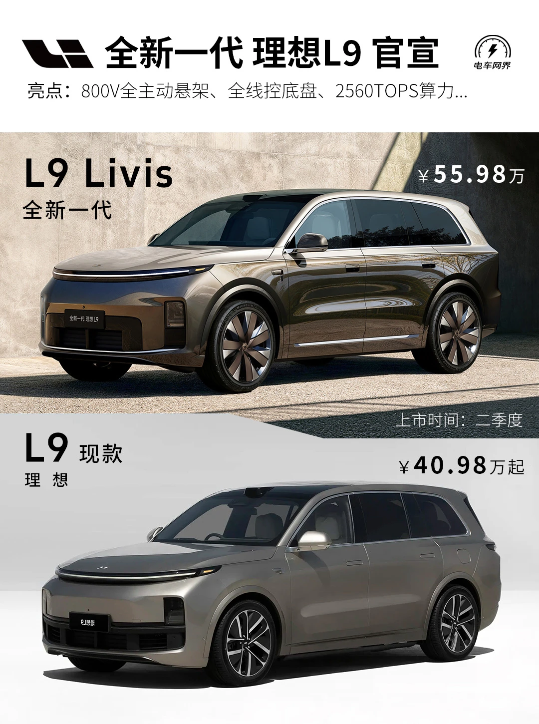 全新一代理想L9将于今年二季度发布,李想的说法就是打造更懂人的智能SUV。其中,顶配版本L9 Livis售价为55.98万元,一共有以下三大突破: