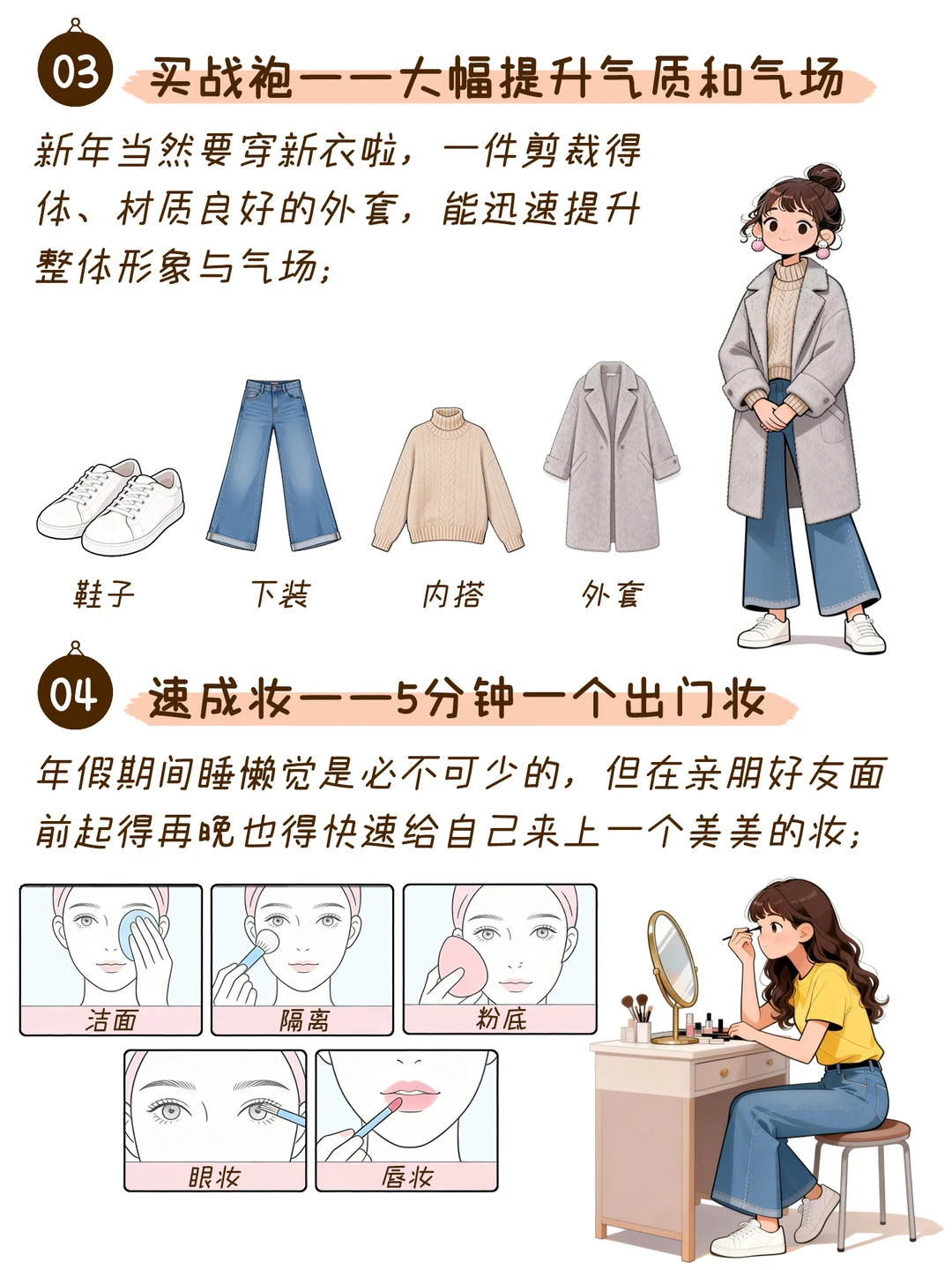 04.速成妆:年假期间睡懒觉是必不可少的,但在家起得再晚也得快速给自己来上一个美美的妆;