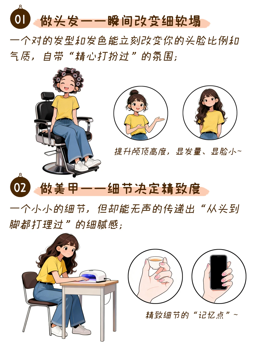 01.做头发:一个对的发型和发色能立刻改变你的头脸比例和气质,自带“精心打扮过”的氛围;