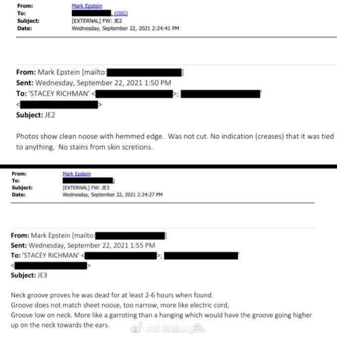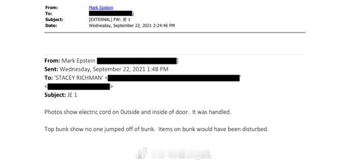 杰弗里·爱泼斯坦的弟弟马克·爱泼斯坦在2021年向律师发送了自己收集的法医证据,表明他哥哥在监狱里“自杀”的说法站不住脚。具体内容如下:
