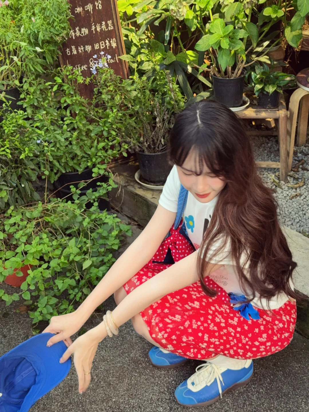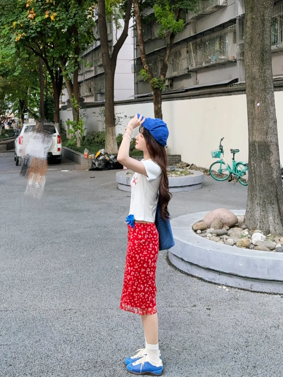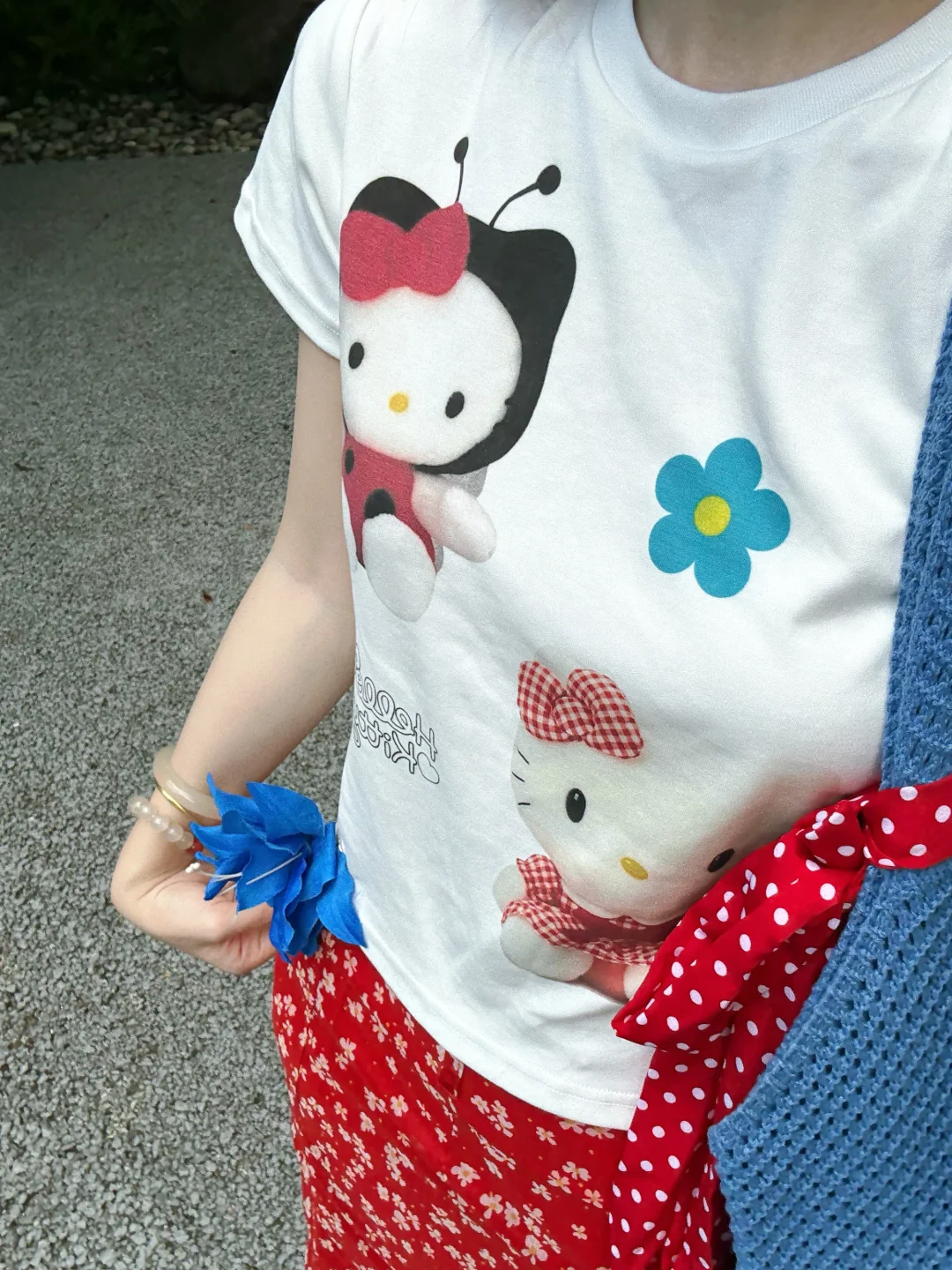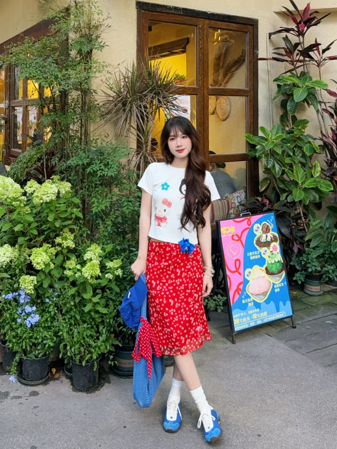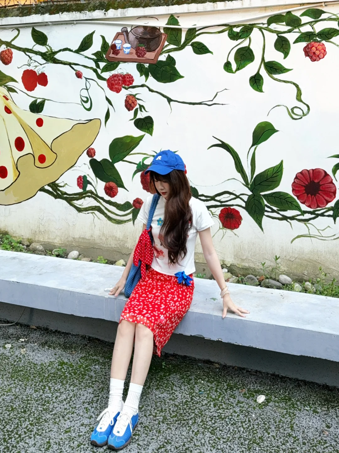 168/106 又是一套红色➕蓝色的夏日海边穿搭 今年真的美美拿捏了泰兰德少女的配色哈哈哈 宝蓝色➕大红色真的明媚又显白!! 不喜欢搭配五分裙的姐妹 可以换成同款长裙 也是不错的 或者搭配红色格子裤或者蓝色长裙 这个短袖想要搭配得比较日常也是ok的 原牛色或者黑色蓝色的拖地裤也好看 配饰选择红色或者蓝色就行~