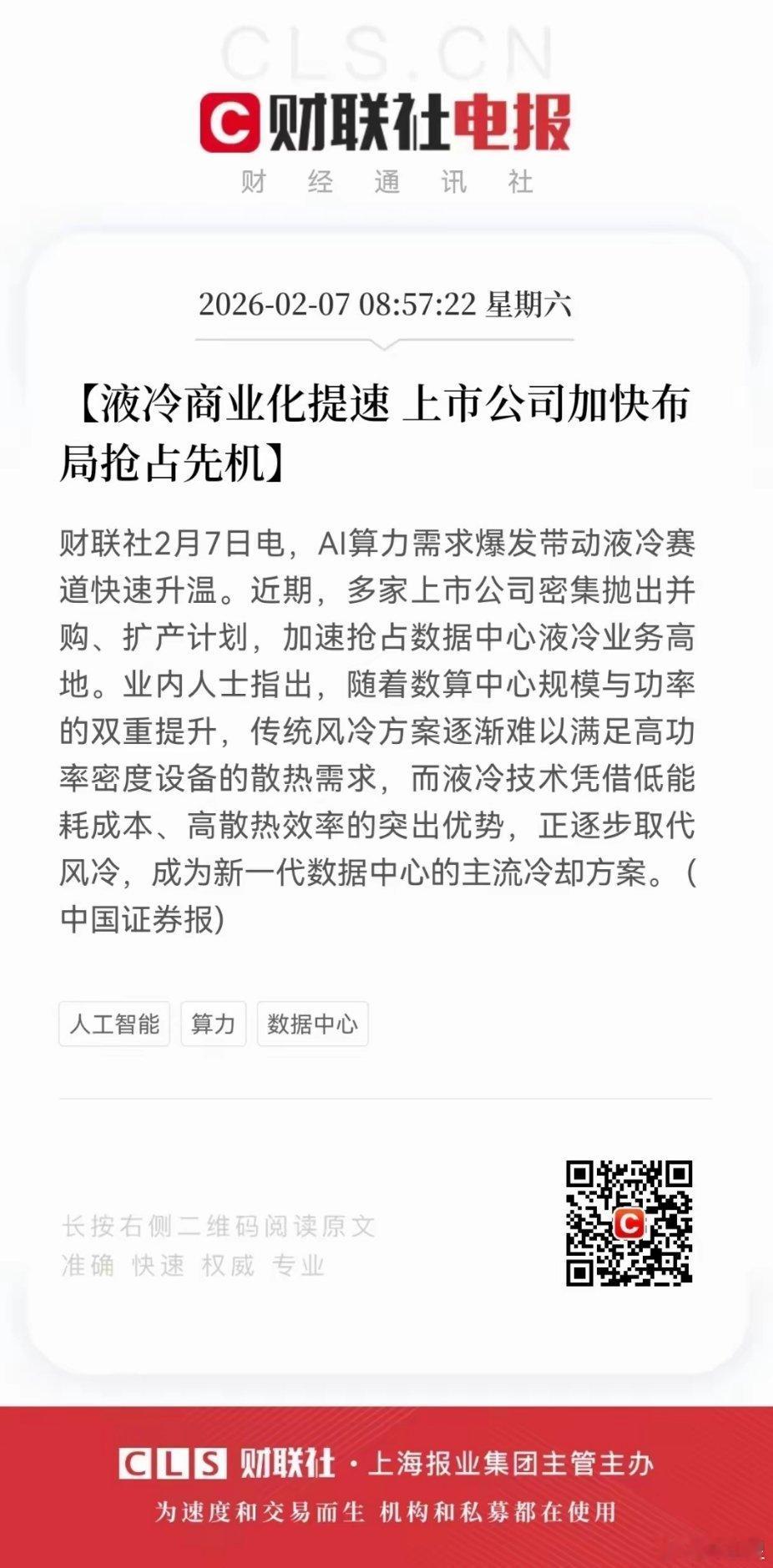 AI算力大爆发,液冷商业化提速!工业富联、中科曙光、浪潮信息、紫光股份、英维克、高澜股份的“春天”要来了吗?经过一段时间回调,工业富联从83元跌到54元,中科曙光从128元来到86元。先来说液冷,就是为服务器降温的科技,大致分为几大阵营:第一大阵营:用户/需求方他们是需求方,采购液冷技术来给数据中心服务器降温。要么是IDC(互联网数据中心),投资建数据中心出租给互联网大厂、AI公司使用;要么是国家通信服务商,需要液冷技术支持。概念股:数据港、润泽科技、宝信软件、杭钢股份、中国移动、中国联通第二大阵营:集成与制造(分2种)1、液冷解决方案商为数据中心提供液冷系统的“一站式总包商”,负责整套管路、散热、控制等基础设施的设计与安装,很多配件都是从制造商或材料商那里采购。概念股:英维克、高澜股份、曙光数创、申菱环境2、服务器制造商他们不搞整体设计,就生产并销售已集成好液冷散热部件的AI服务器整机。概念股:浪潮信息、中科曙光、工业富联、紫光股份、中兴通讯、蓝思科技(收购)、神州数码(代理)第三大阵营:关键部件与材料1、冷板(直接贴合CPU/GPU吸热)概念股:奇鋐科技(英伟达供应商)、双鸿(英伟达)、飞荣达(头部企业供应商)、科创新源、银轮股份、纳百川、美利信(英伟达)2、管路与连接件(高密封、防漏液,快接头(UQD)价值高)概念股:川环科技、富世达(快接头)3、冷却液(浸没式用氟化液,技术壁垒高)概念股:巨化股份、新宙邦4、CDU(冷量分配单元)概念股:飞龙股份、高澜股份、申菱环境、英维克、同飞股份5、泵(驱动冷却液循环)概念股:飞龙股份、大元泵业、南方泵业(供给腾讯、华为)6、其他部件概念股:三花智控(电磁阀)、中航光电(液冷连接器)、川环科技(液冷管路)