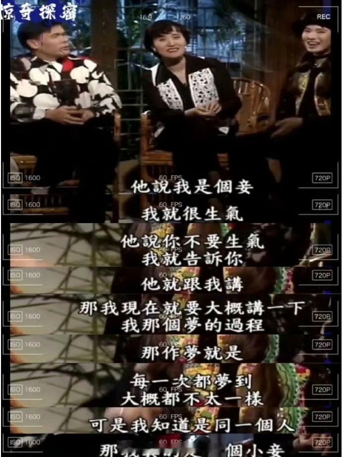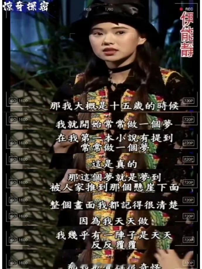 伊能静在采访中也曾说道:我反复梦到过自己的前世。几世都是妾,她是将军最宠爱的小妾,因为受宠被几房夫人联合推下悬崖摔死了。她还说前世当了好多次“妾”,不过能歌善舞,她的天赋也延续至今,所以这一世是名演员、歌手。就是相貌也还有些“妾相”。这一世她跟前夫哈林也是虐恋,两个相爱的人因为门第,得不到婆家的认可被迫分手。