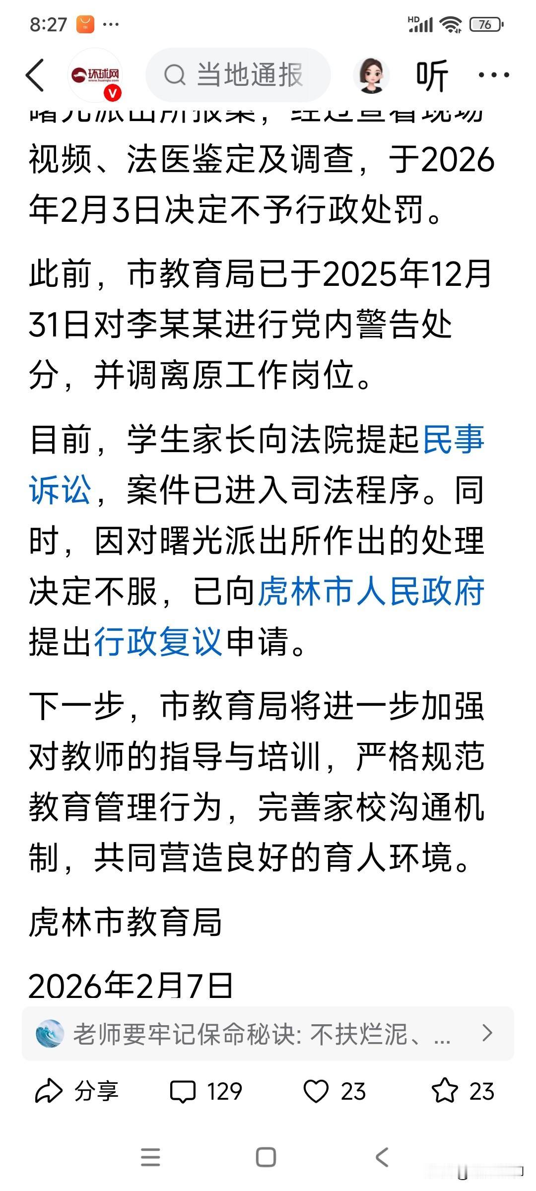作为一个文明古国,中国老师应该有其尊严,学生打闹不能因为他是学生,就以不懂事要求老师忍让,古人还知道尊师重教,戒尺惩戒,时至今日,老师却被说调走就调走,让道歉就道歉,这是什么做法?老师尊严何在?为什么屡屡遇到如此家长,倒霉都是老师,老师打一下捣蛋的学生怎么了😳,若如此下去,我对我们的学生未来担忧,一个个小皇上,今后能干什么?一个个小软蛋今后又能做什么?故而我某地对老师的处理真是不太理解😔