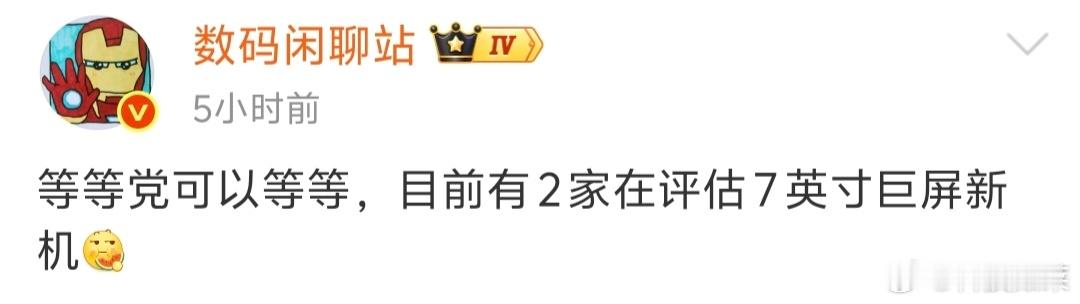 各有两家大厂正在评估7英寸巨屏新机,咱就是说这波直接戳中巨屏党的心了!电池容