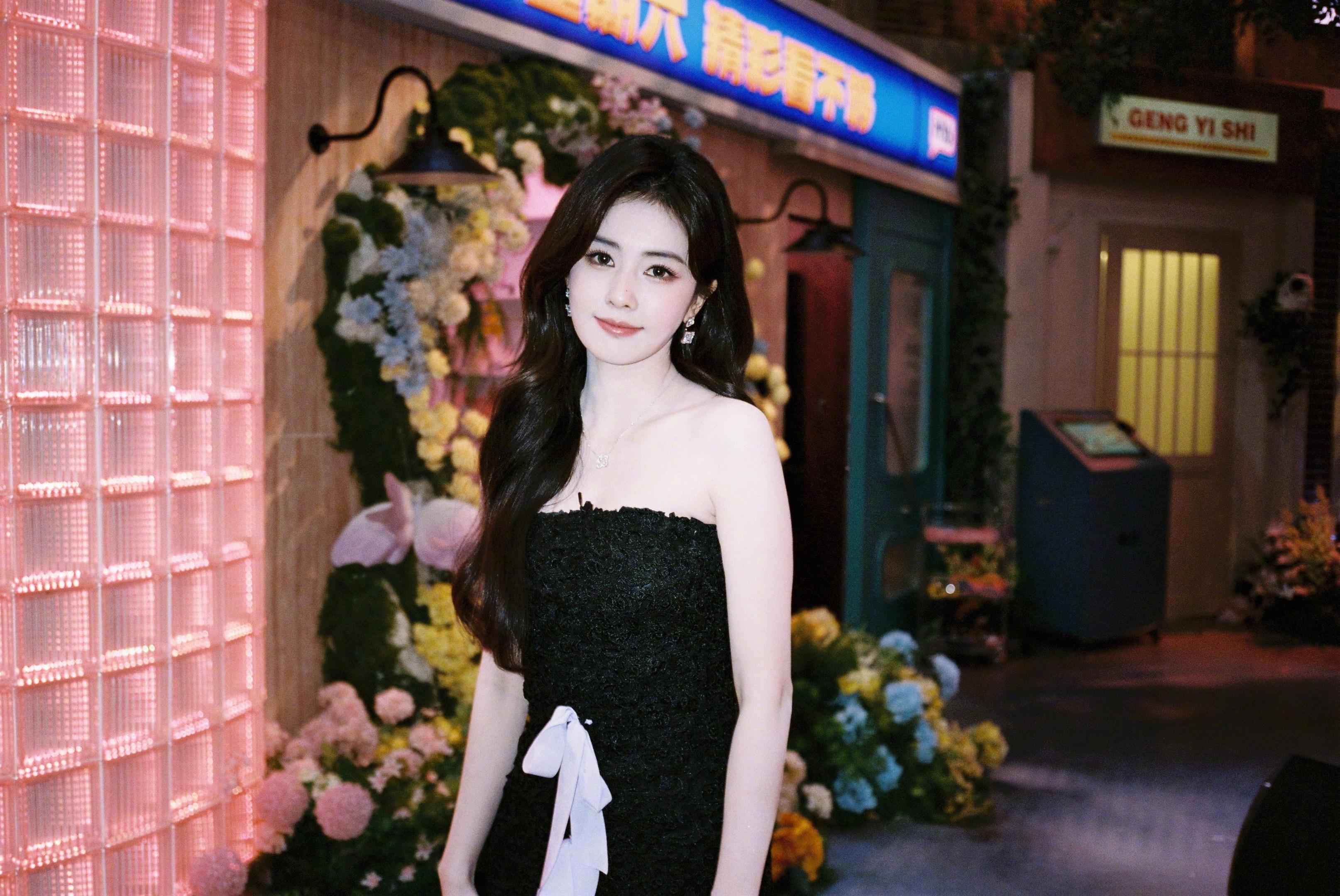 张天爱跟素人合影,胯真的好宽,大宅院似的