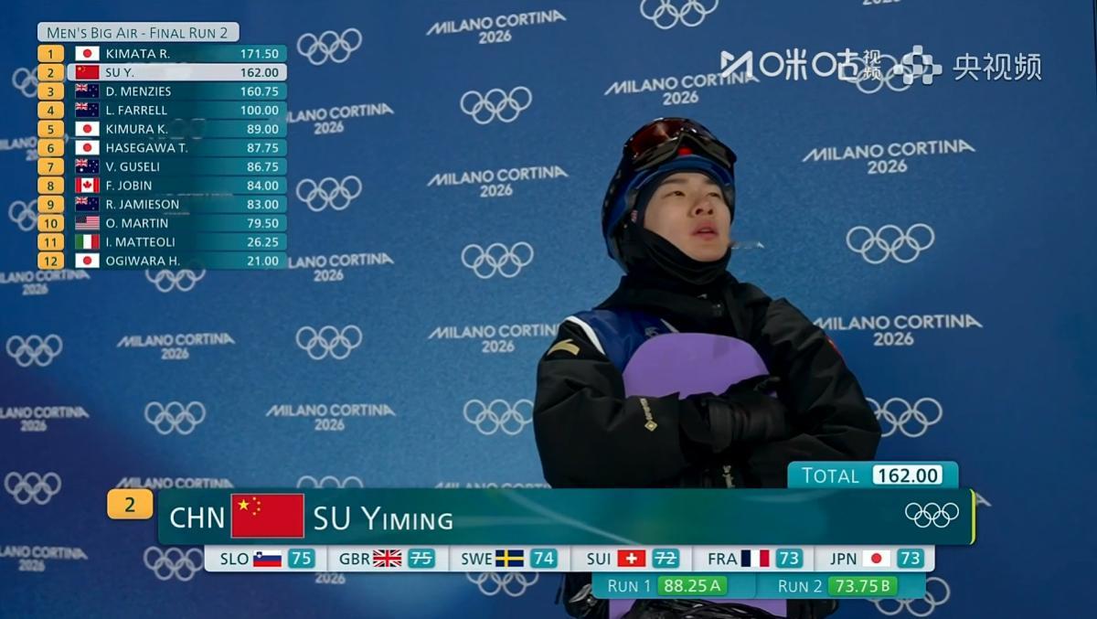 🔻第二跳也是1980啊🔻第一跳88.25,第二跳73.75苏翊鸣第一跳1980苏翊鸣决赛全民聊冬奥海外新鲜事