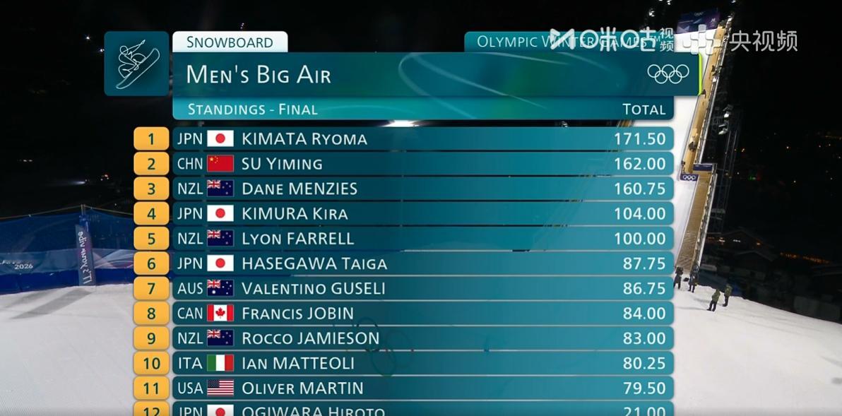 🔻两位日本选手基本告别领奖台了。🔻选手压力还是很大。苏翊鸣第一跳1980苏翊鸣决赛海外新鲜事全民聊冬奥