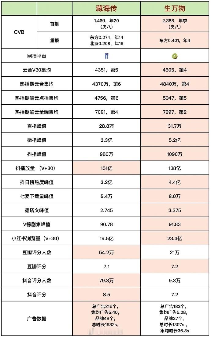 现象级大爆剧《藏海传》和《生万物》数据全方位对比🈶
