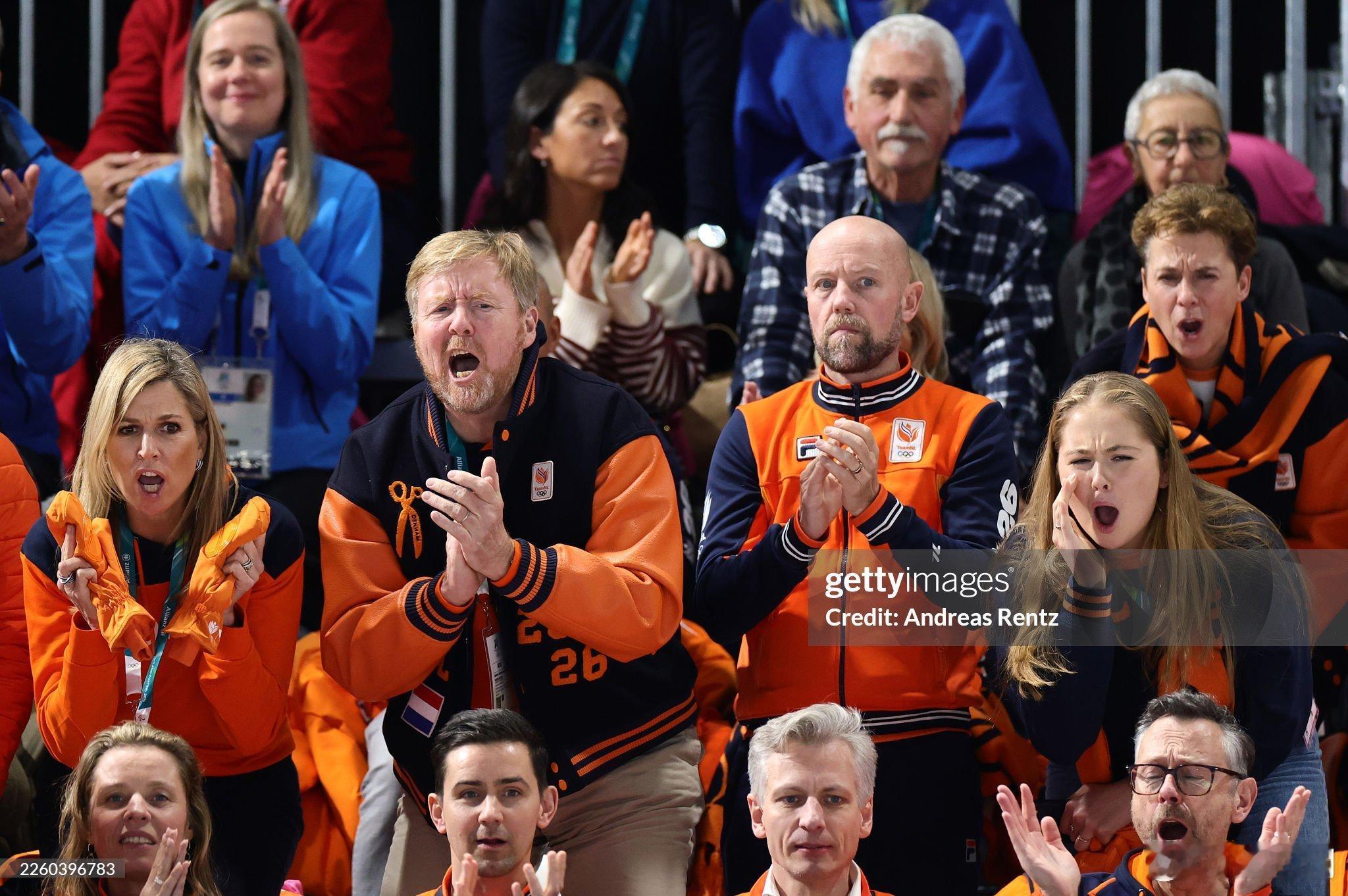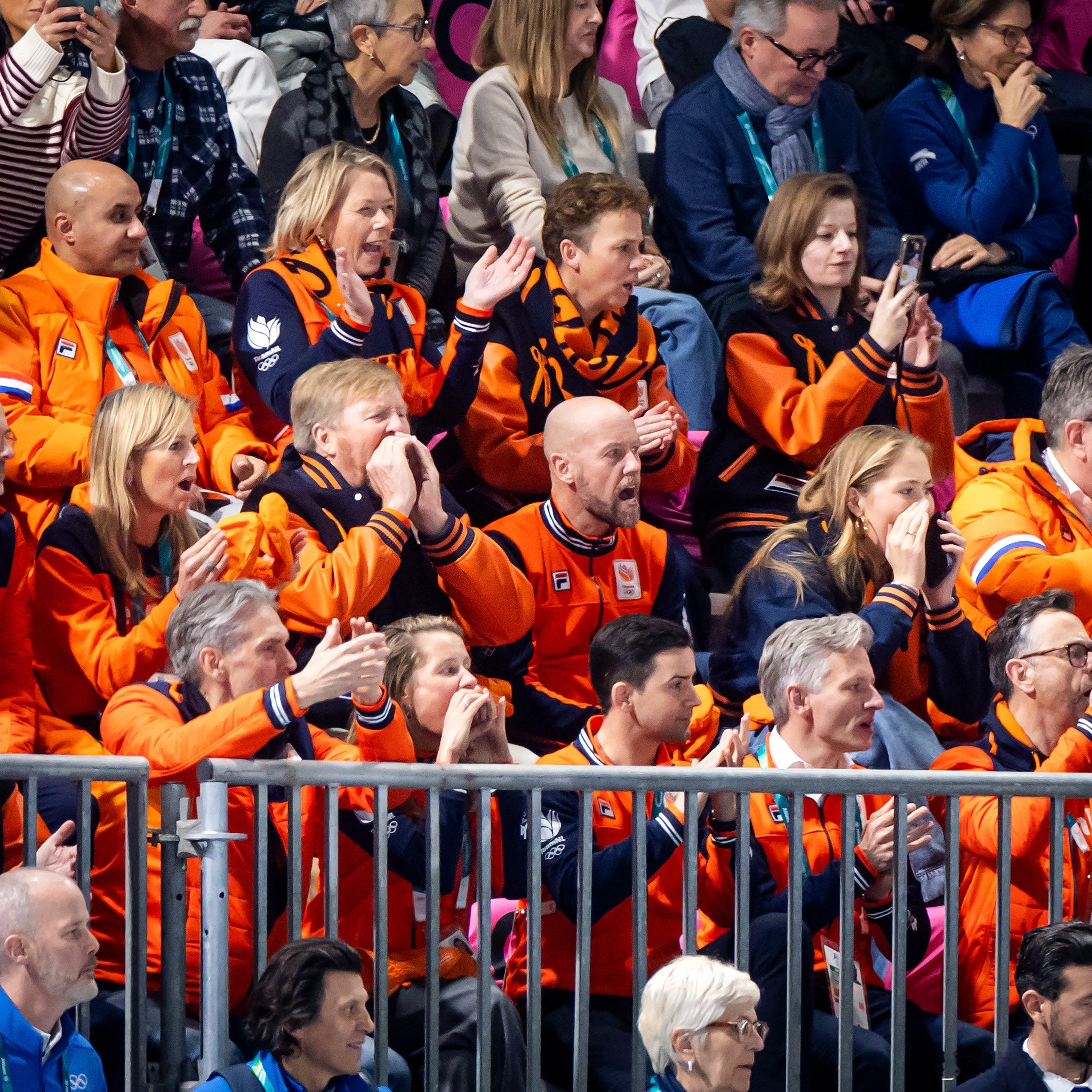 荷兰王室 🇳🇱2月7日,威廉-亚历山大国王、马克西玛王后、奥兰治公主凯瑟琳娜-阿玛莉娅参观奥运村,观看在米兰速滑体育馆举行的女子3000米速滑比赛。橘子家就是气氛活跃,嗨爆啦~世界各国王室2026年米兰科尔蒂纳冬奥会