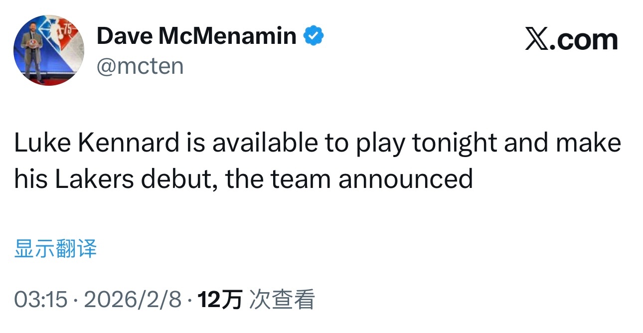 肯纳德将在今天迎来自己的湖人首秀,上个月他在客场与勇士的比赛里得到22分,三分球