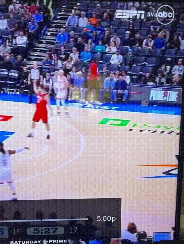 火箭赛季首胜雷霆 真的,我第一眼都没看出来这球有什么毛病……果然是被现在的NBA带坏了……