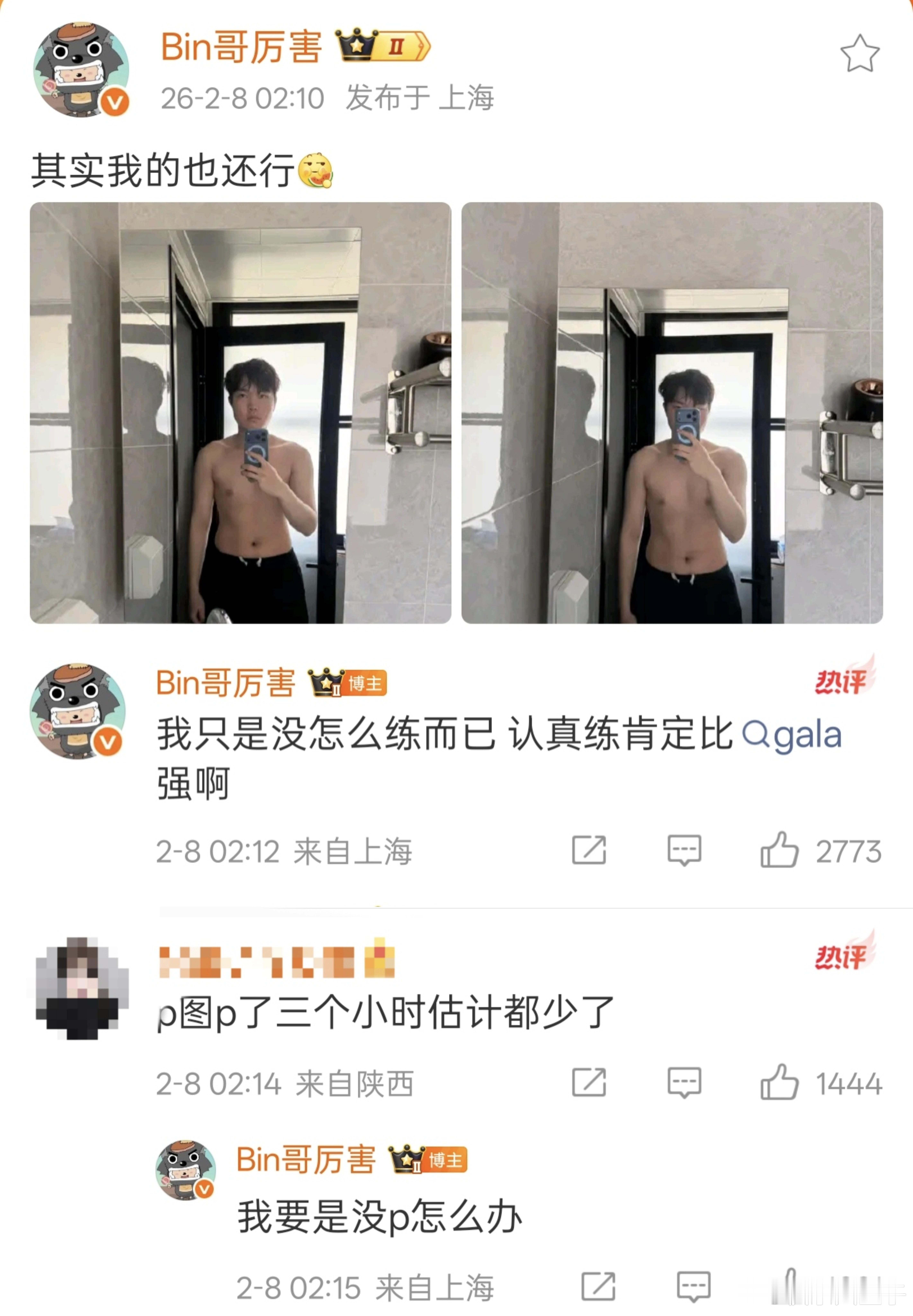 Bin自拍晒身材照Bin英雄联盟