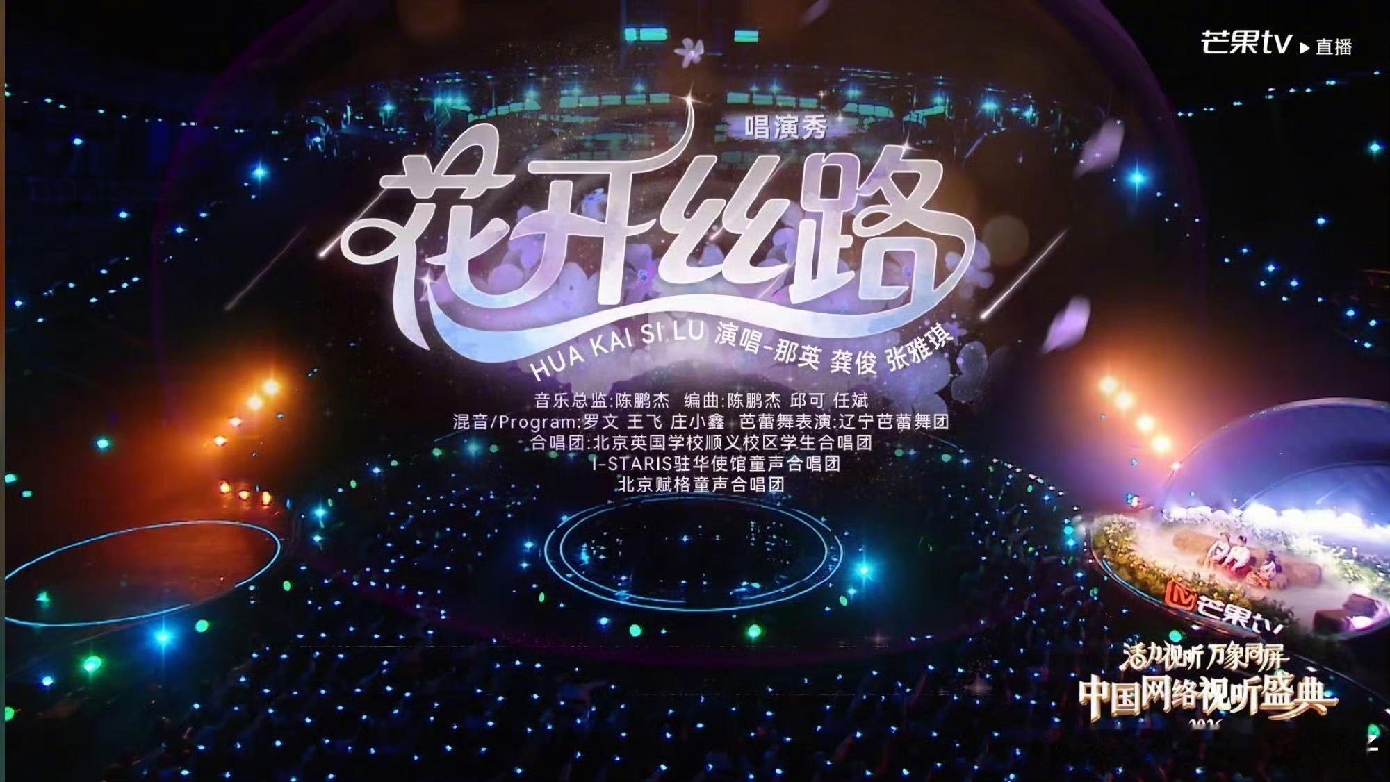 不知道反正芒果的节目很曼妙芒果舞台真的太会了!时代少年团《一眼千年》、魏大勋《画影流年》、《跨越时空的敬礼》、那英龚俊张雅琪《花开丝路》,每一帧都美到失语,把东方美学和历史厚重感狠狠拿捏,这才是顶级舞台该有的样子!中国网络视听盛典