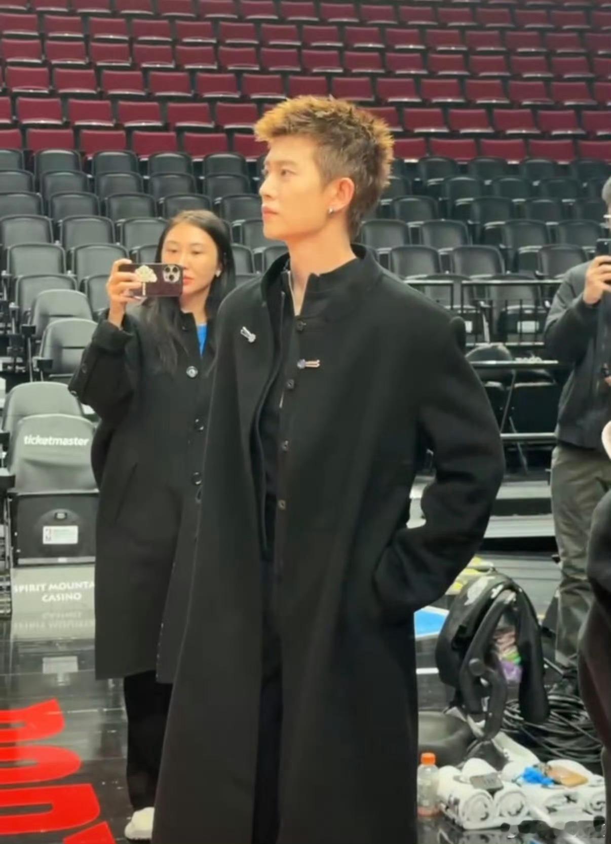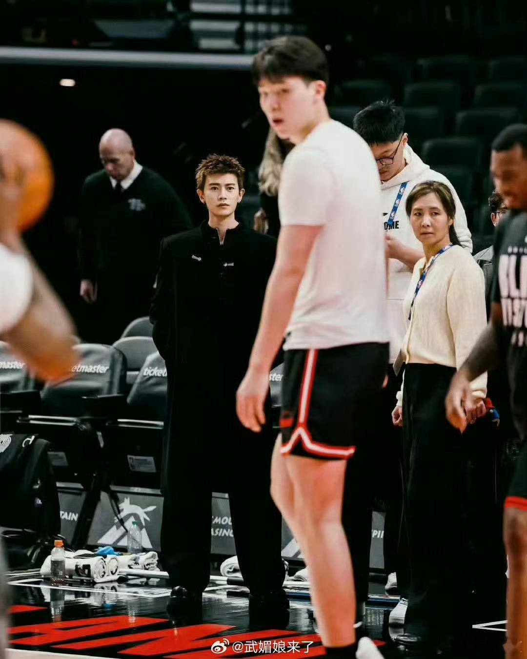 任嘉伦观战NBA路透,还获赠了开拓者全明星球员阿夫迪亚的球衣,不得不说他站在那里好像严厉的东方教练啊任嘉伦nba马力全开