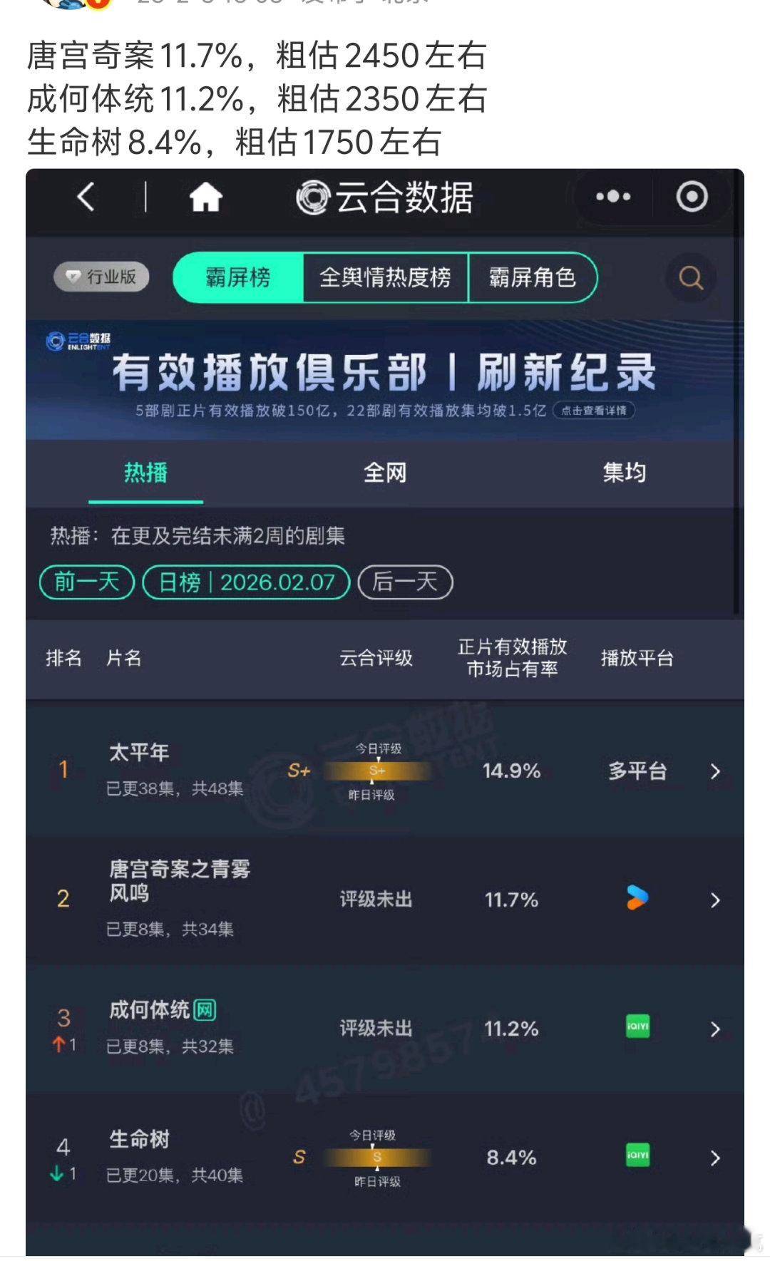 成何体统首日要高开了,昨天剧情反馈以及对主演王楚然 丞磊的评价都很不错!