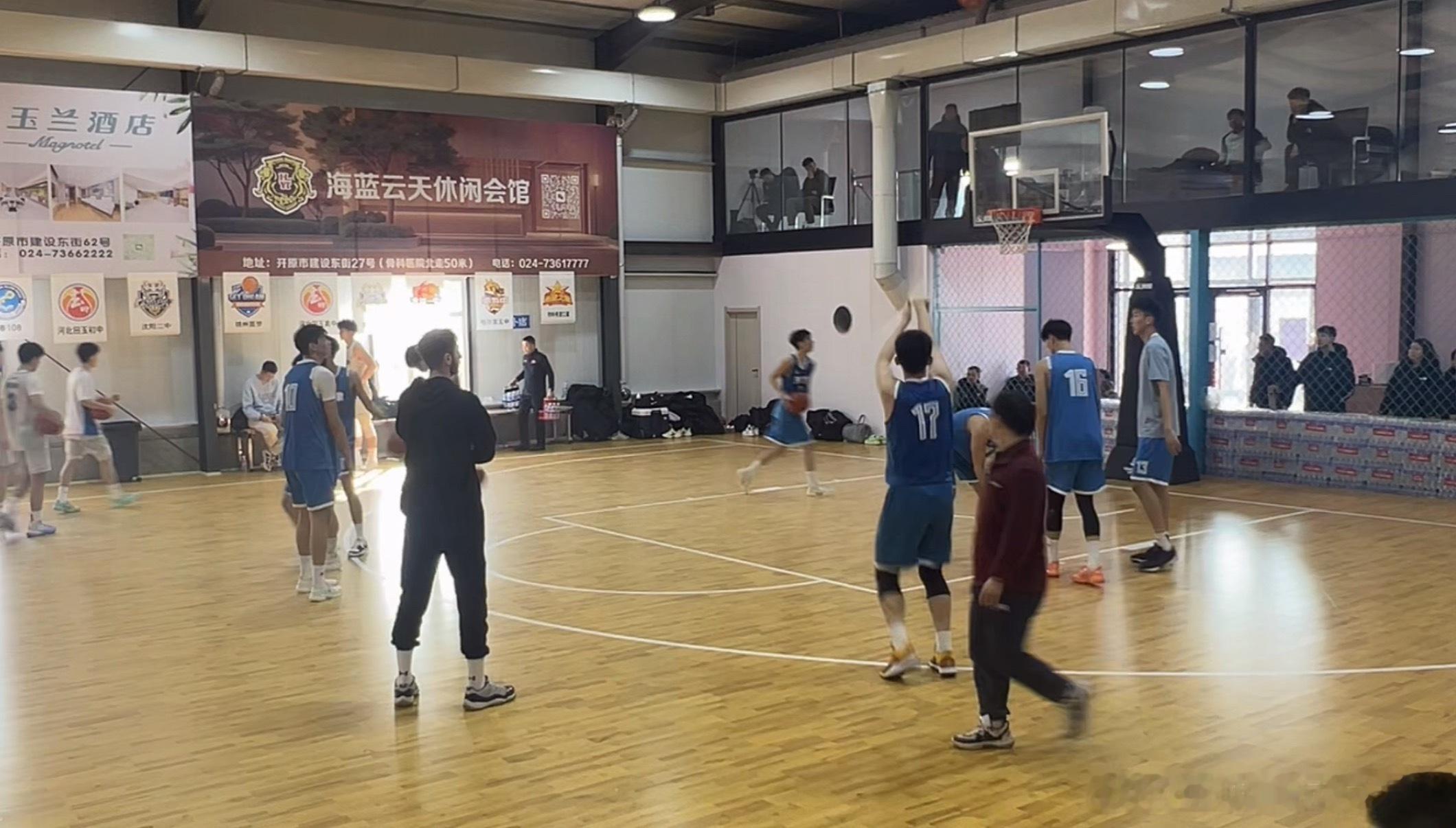 辽宁男篮青年队正在和天津青年队比赛。应该是热身赛,有点看不清,而且小球员我认识
