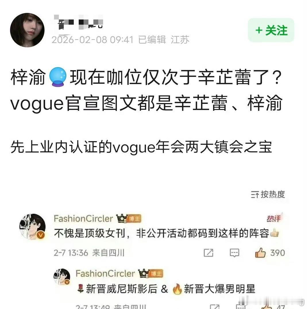 辛芷蕾梓渝VOGUE双压轴还是梓渝争气啊…不用粉丝出手帮忙抢沙发缝儿……