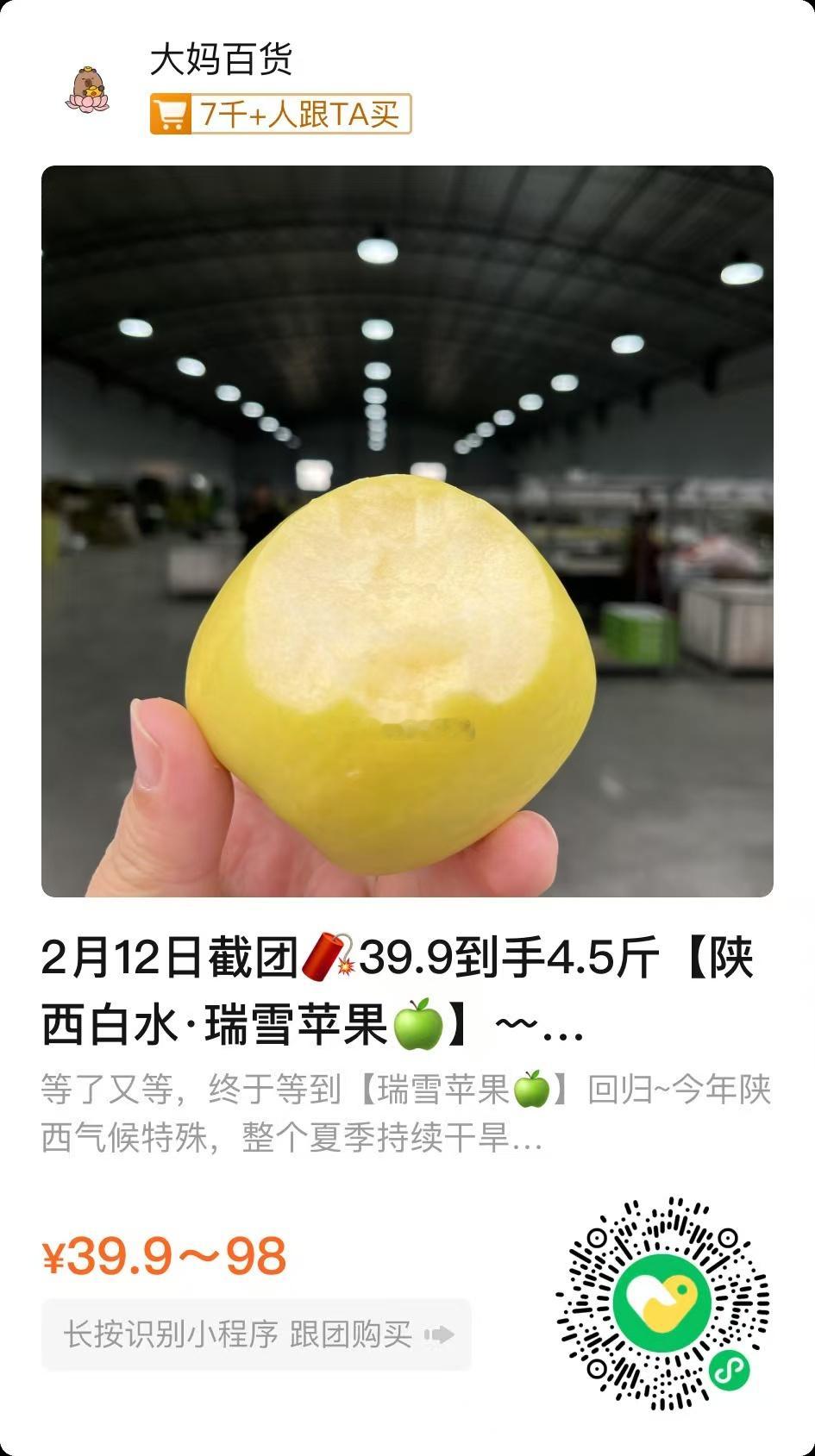 节前有活动 39.9/4.5斤中果,2.12早9点截单.