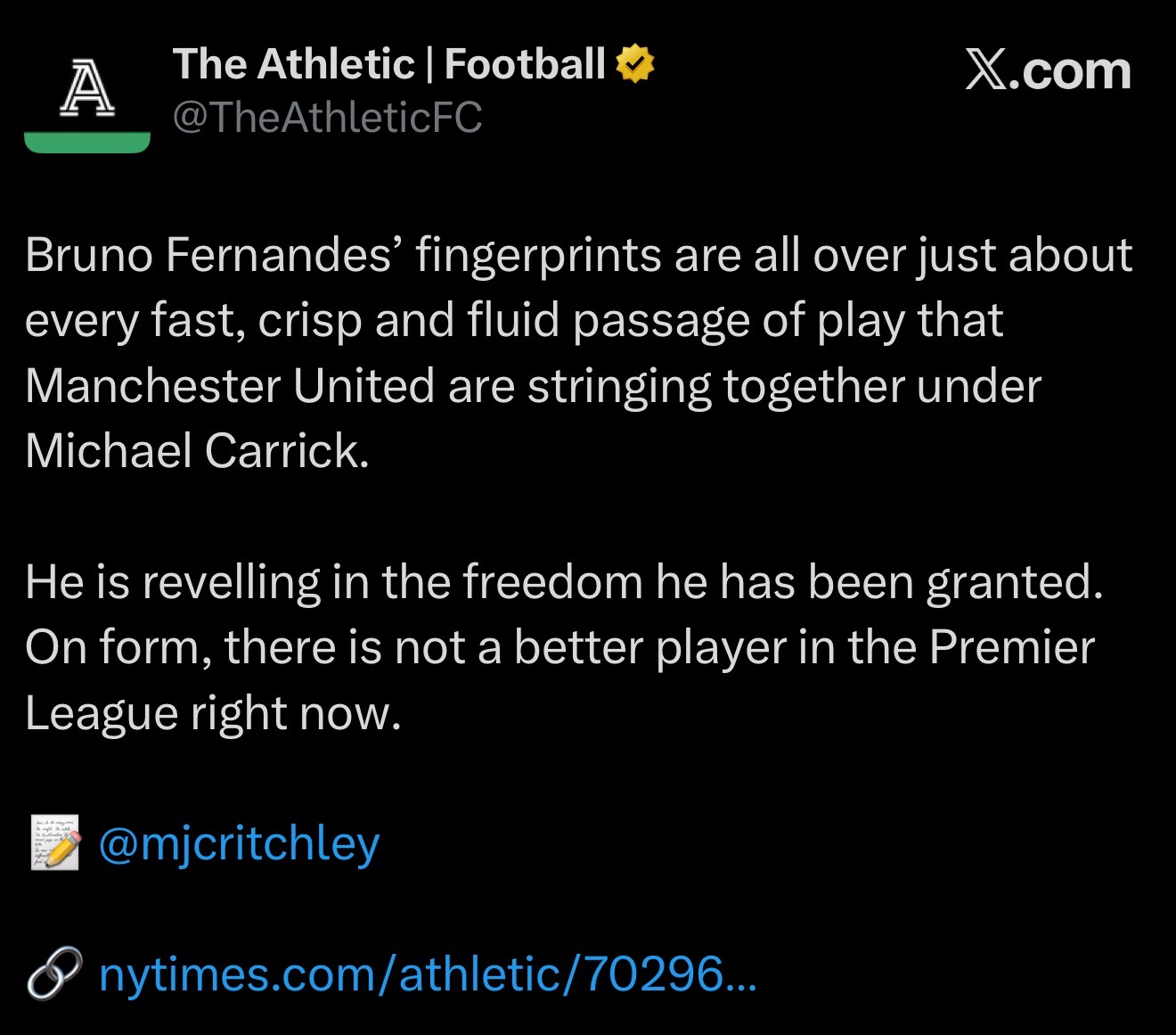 “free kobbie”已经是一个过去的闹剧了,烟消云散。大记Mark Critchley的新文章,自由的Bruno。比起mainoo,真正需要“自由”的恰恰是BF,我好像说了快2-3年了吧