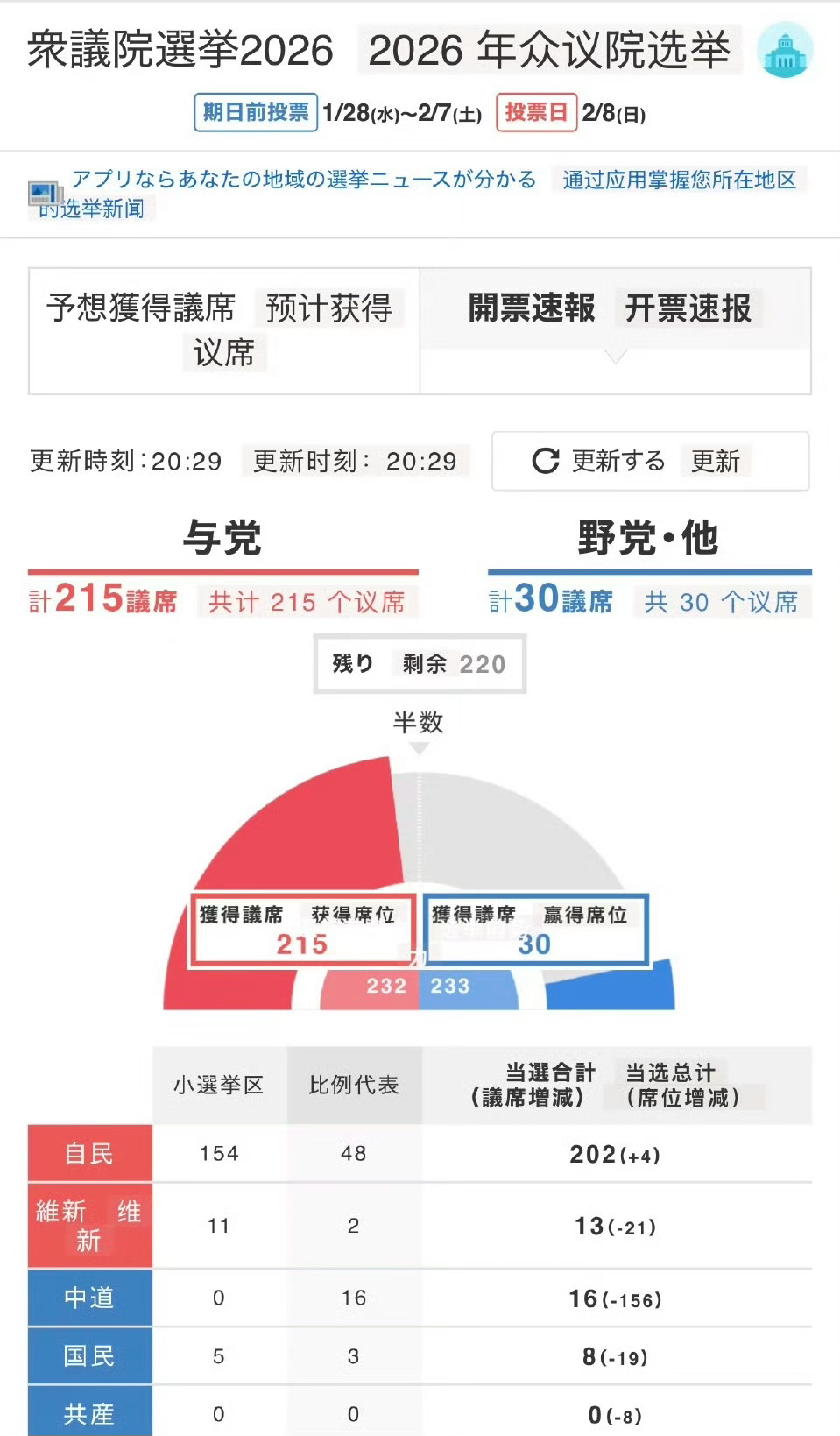 日本大选开票,油门踩到底!日本执政联盟将获众议院过半议席中国军网点名张本智和
