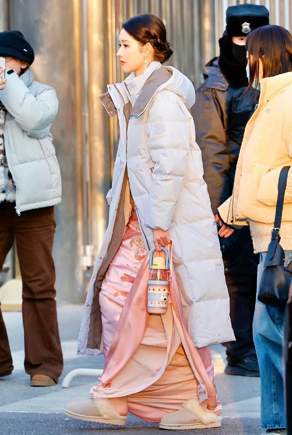 张天爱跟素人合影,胯真的好宽,大宅院似的