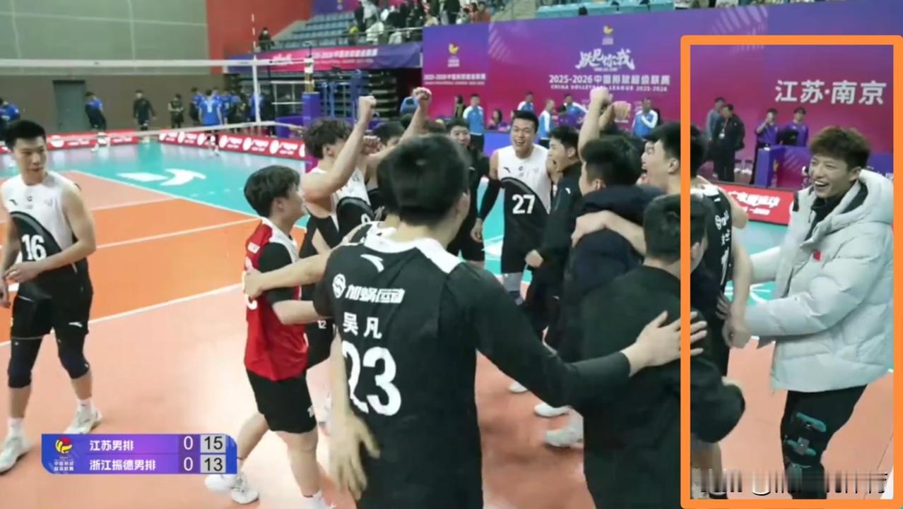 江苏男排金局制胜冲A成功!“男明星”吴昊泽左腿受伤严重戴着护具冲下场与队友庆贺胜
