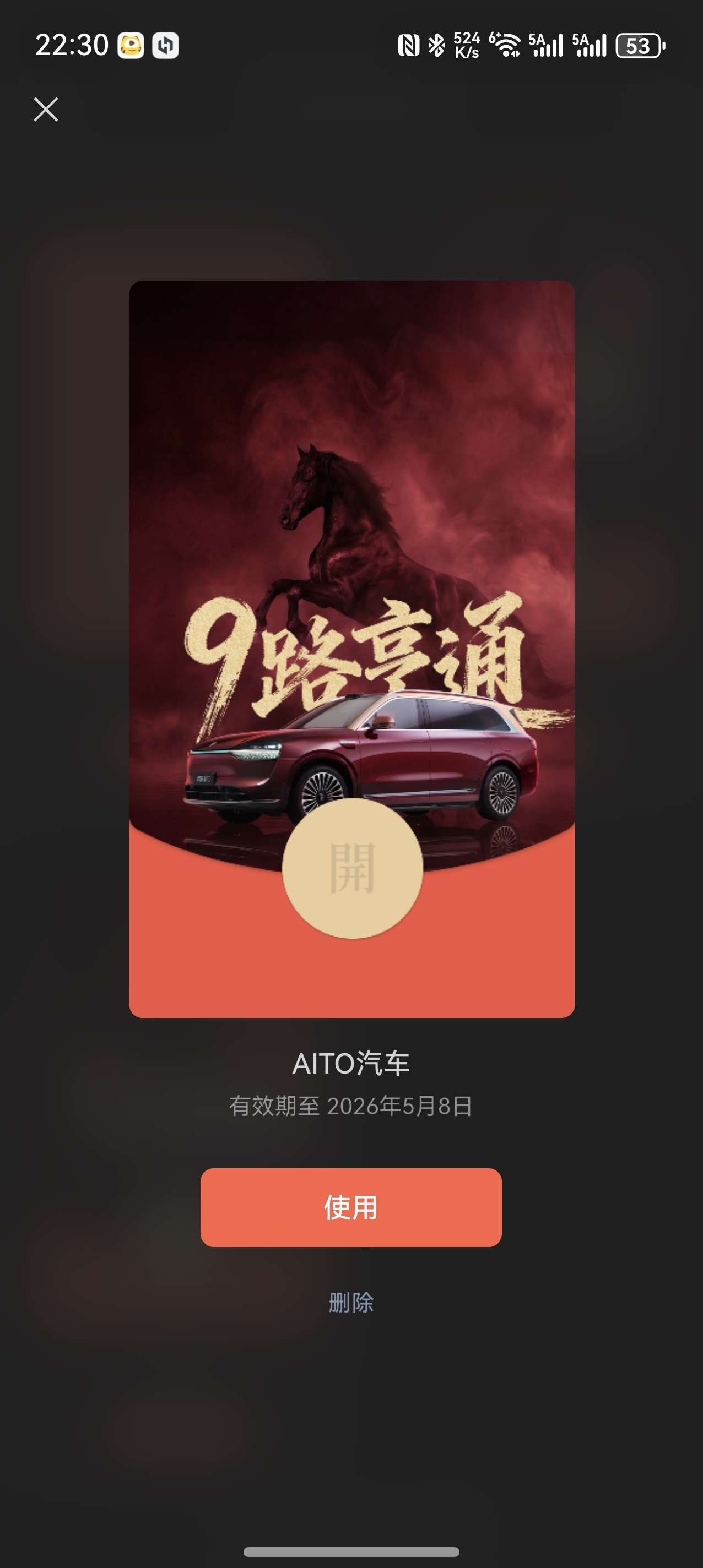 可以去问界汽车的公众号(AITO汽车)领红包封面5和7发完了,8和9还有我先用M
