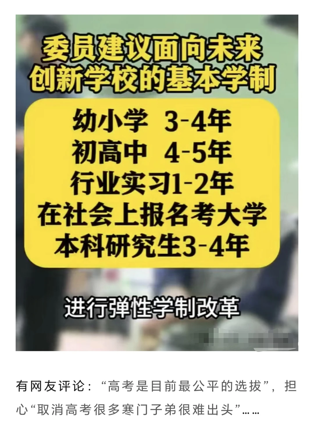 还建议弹性学制,幼小学3-4年、初高中4-5年,