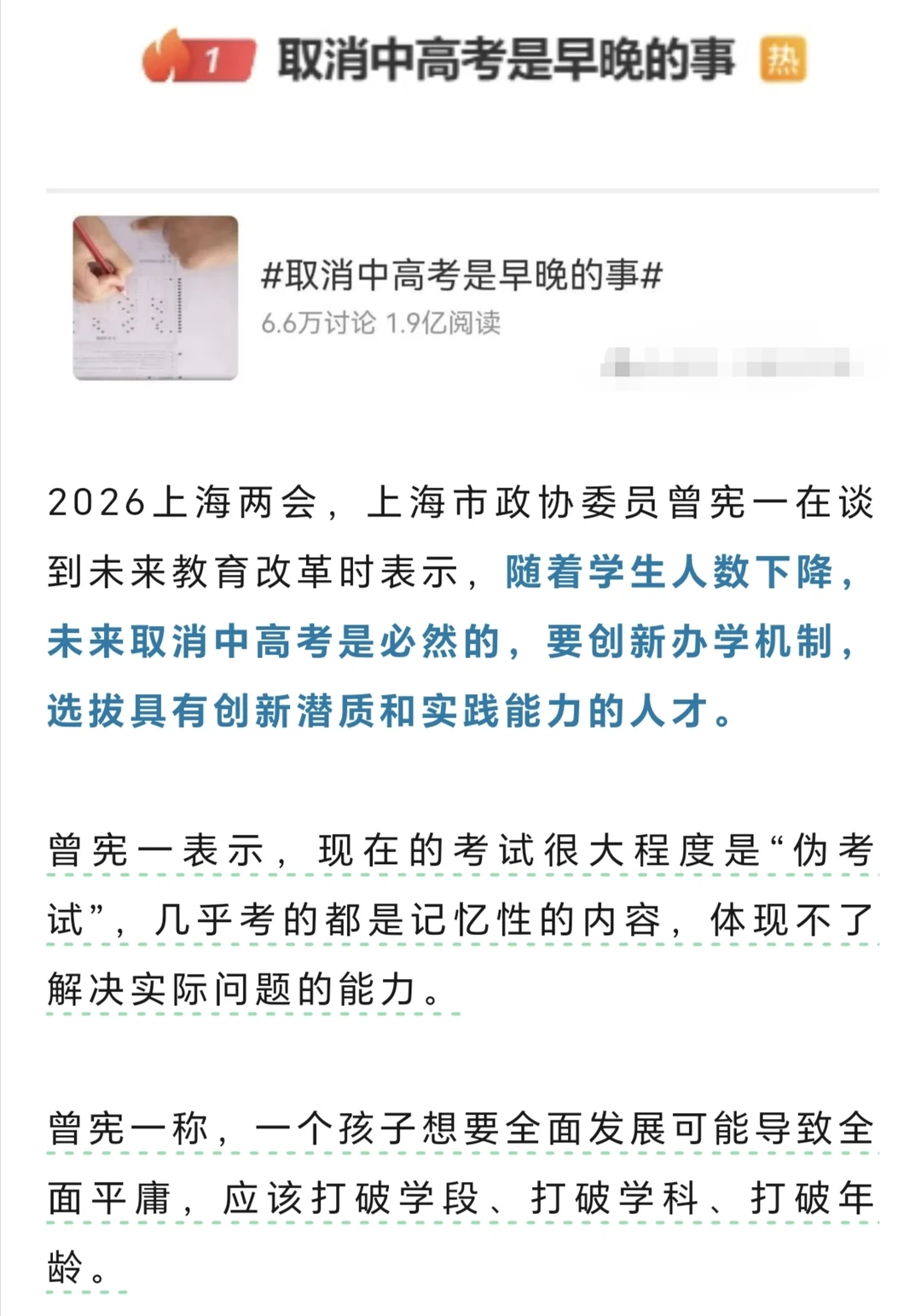 上海两会委员说取消中高考是早晚的事,