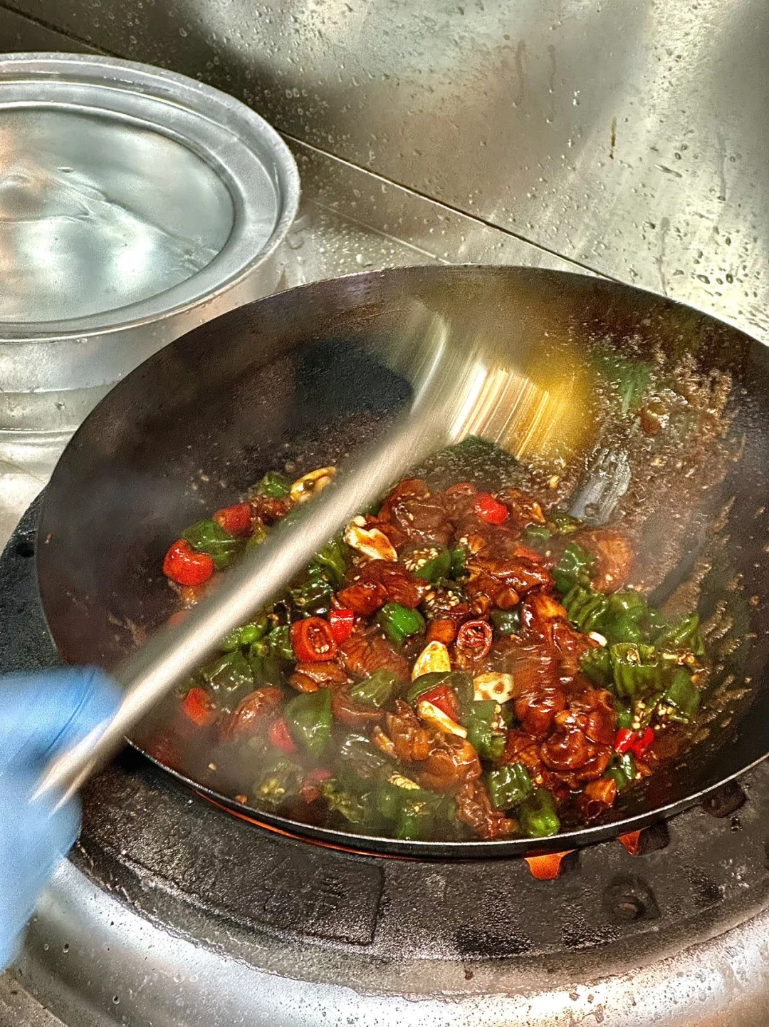 小锅猛火现炒,端上桌时还在滋滋冒油,辣椒香得能把魂勾走。