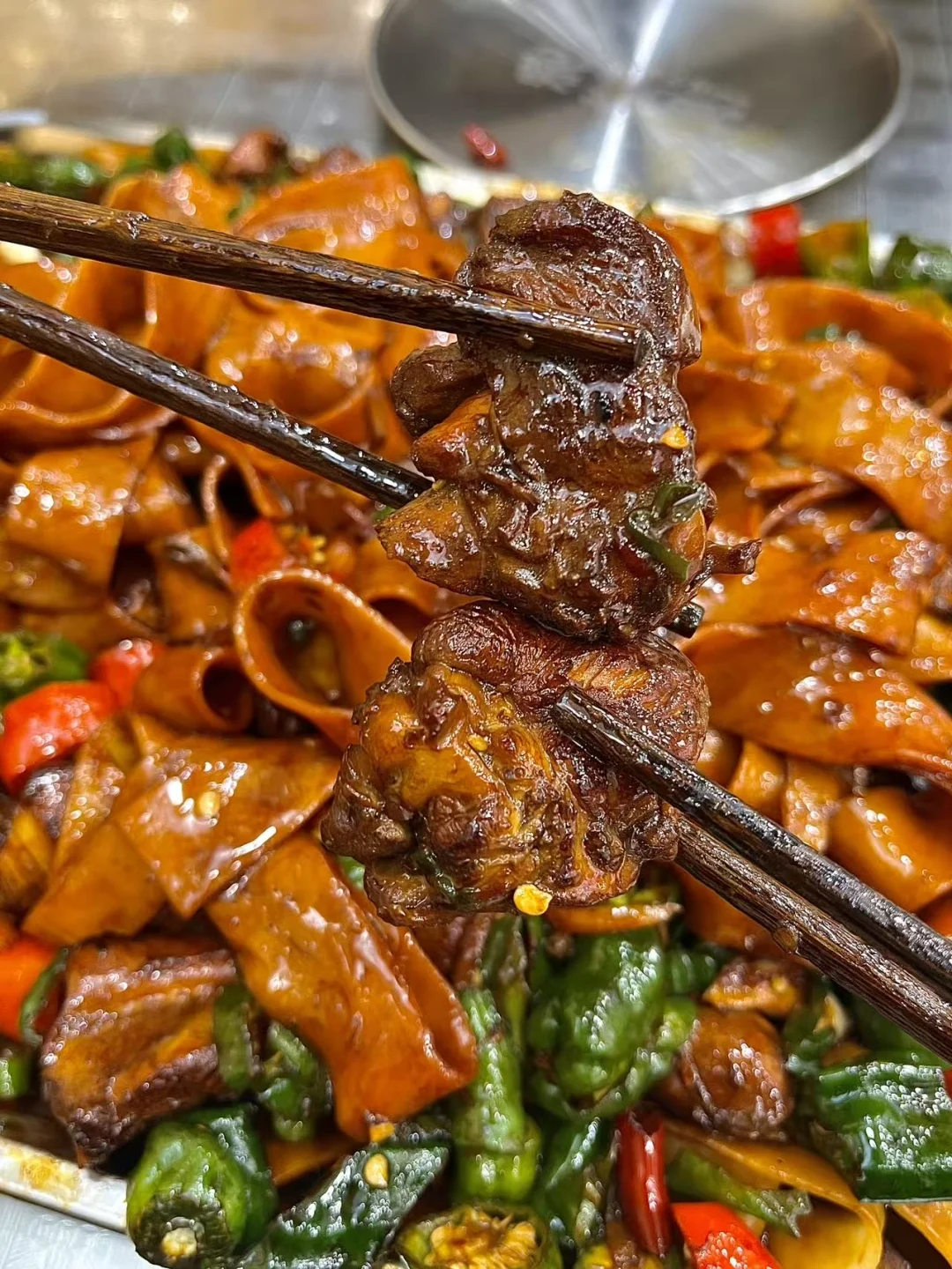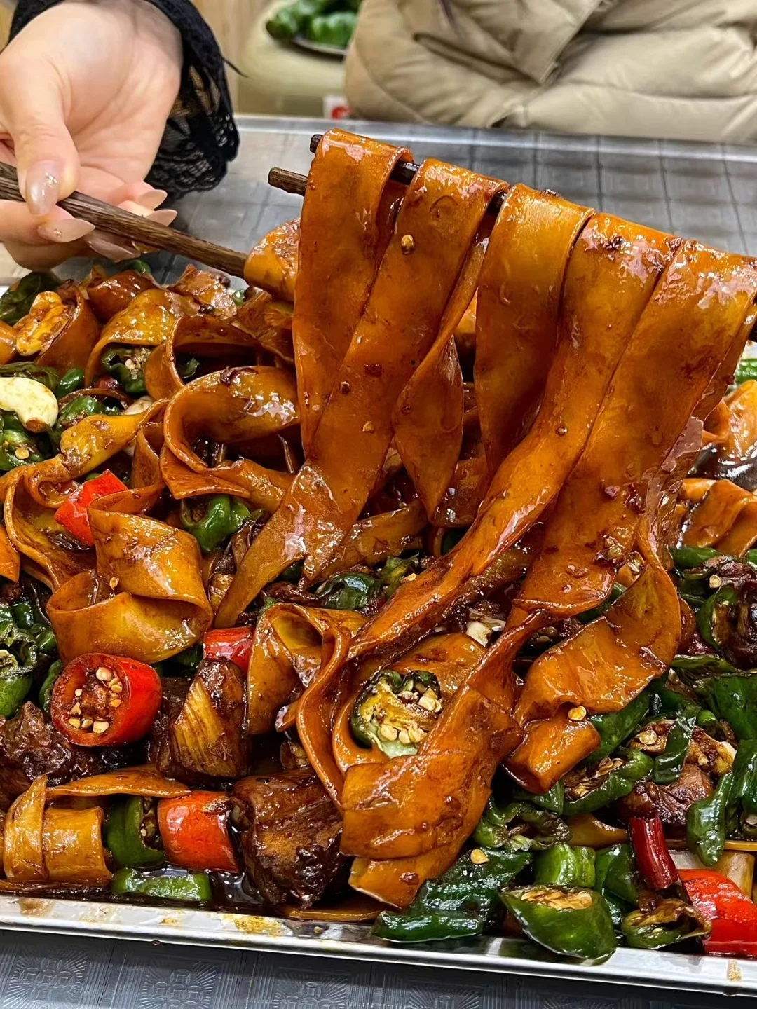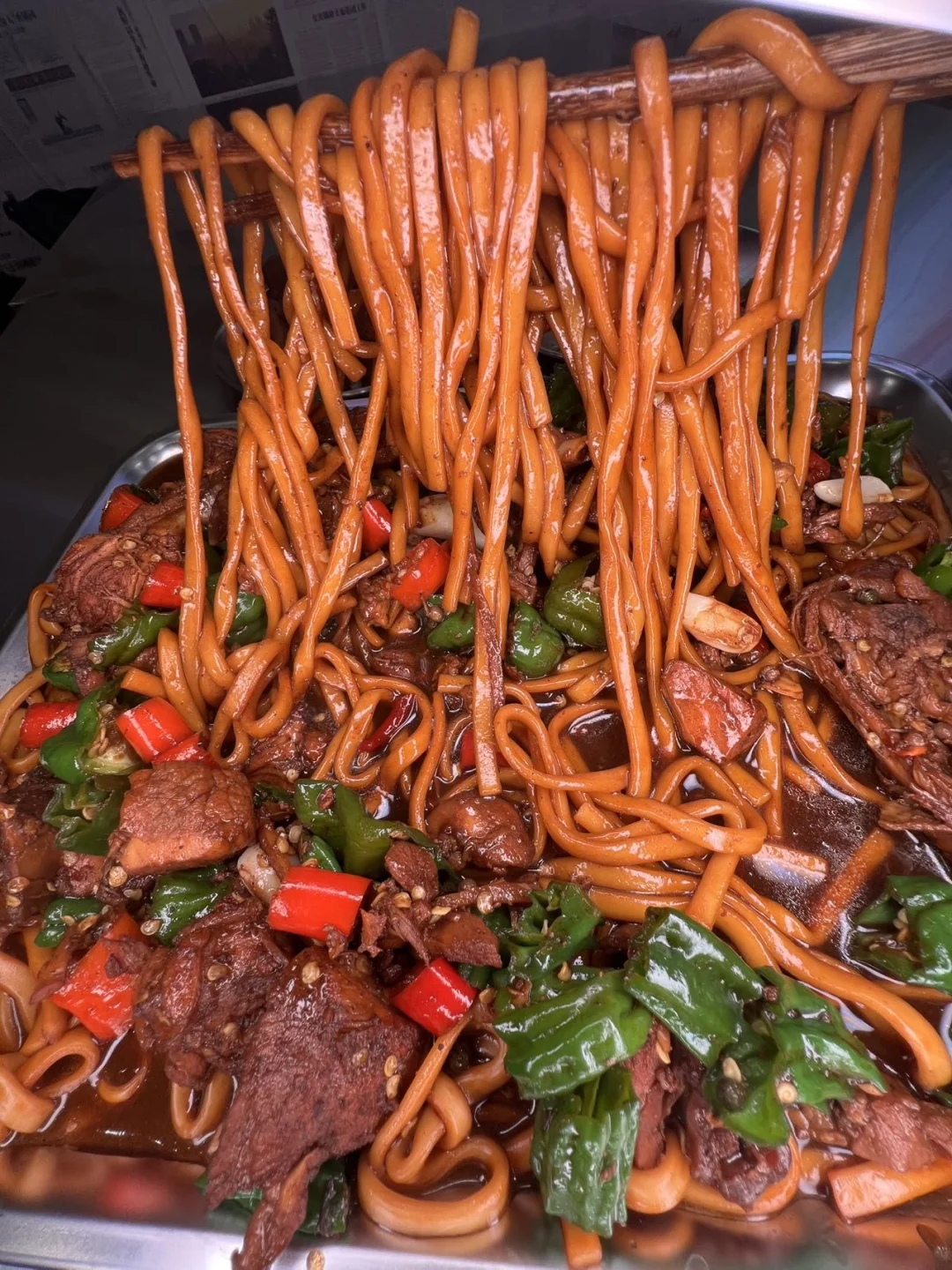 🍜 手擀面劲道得不行,裹上浓稠的酱汁,根根都挂着料。