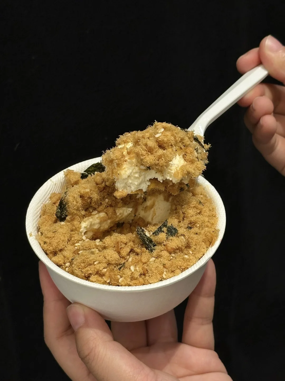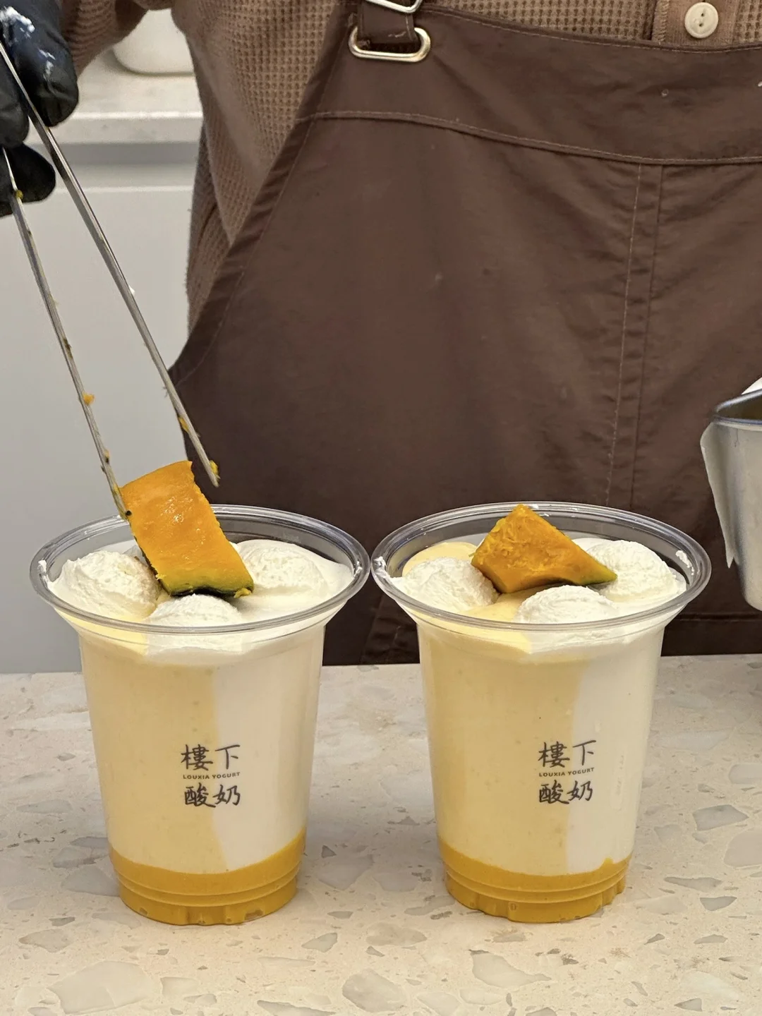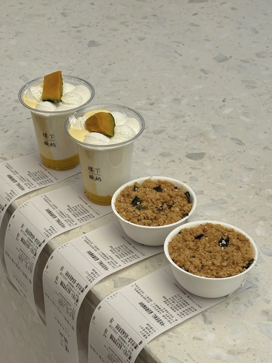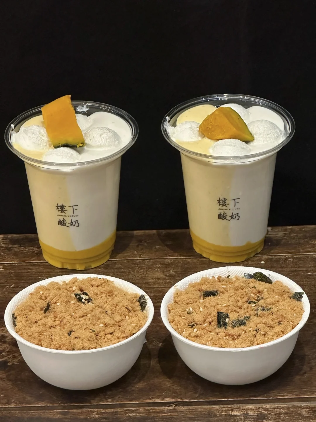 肉松小贝pro版!!! 南瓜➕咸蛋黄➕肉松➕海苔碎… 好特别的组合!!一口意外的好吃,黏糊糊的咸甜鲜香!!越吃越上头🤤 还有南瓜苹果鸳鸯酪!!奶fufu的口感好丝滑了~