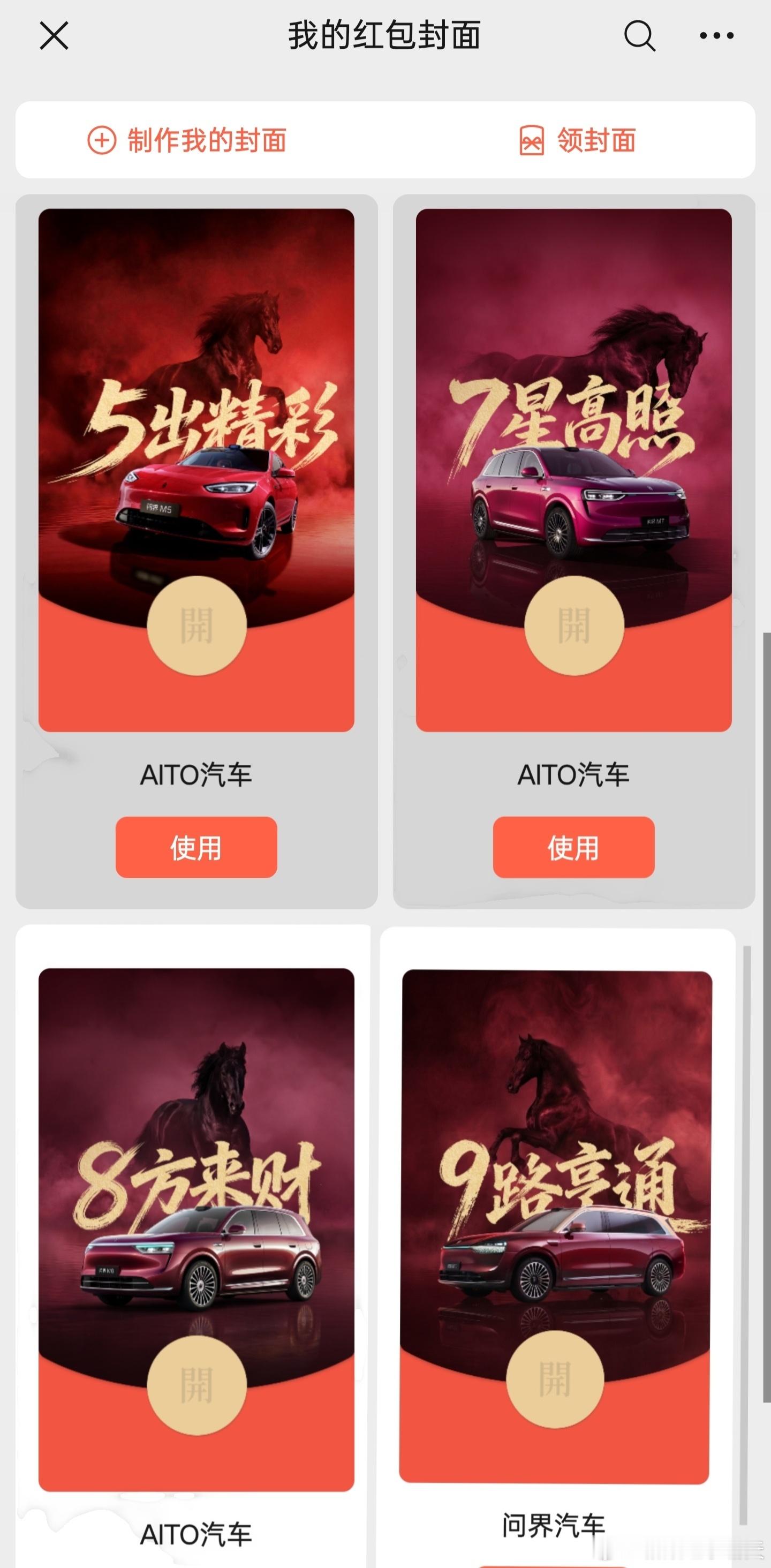 问界 5789 的红包封面,你们觉得哪个最好看?(话说咋不弄个 6 的、凑齐同花