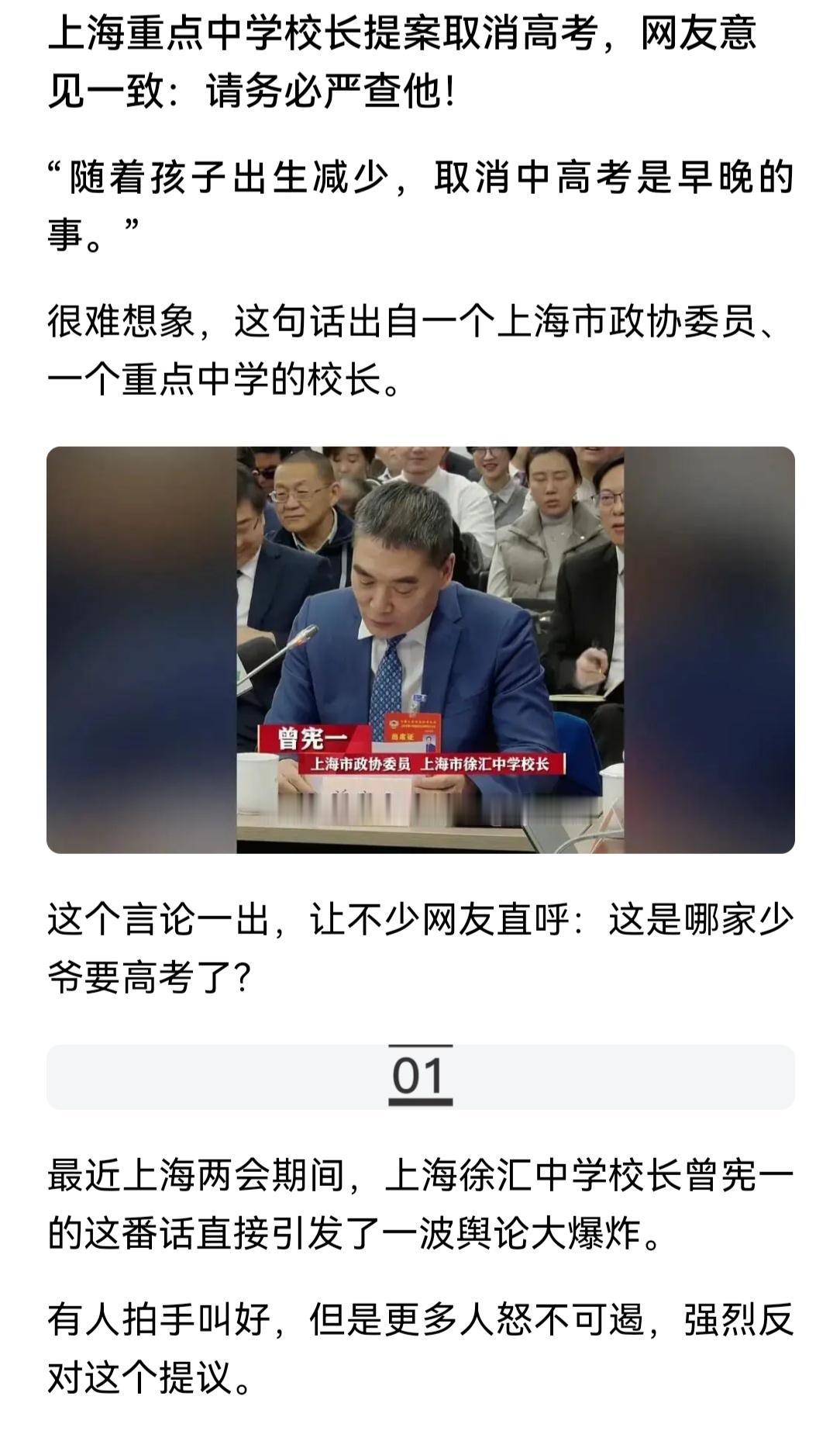 上海徐汇中学曾校长的一个提案,遭到了鸡蛋菜叶的集火。他的建议是:取消高考,以“综合评价”为录取标准。 他的论据是: 一,出生人口越来越少,十几年后会有近半数专科以上高校无生可招,市场需求互换了;二,中学的知识都是记忆性的,用处不大,没必要卷。 有道理,而且这是“国际通行”录取体系,当然有道理。但是这位校长拿衣服的是,一旦评价标准模糊,评价尺度弹性,推荐信偏门,政治正确加持……“评价”这个词,就会臭大街。 我也反对卷,卷就是囚徒效应,只提高了成本,痛苦了过程,增多了损耗,却没有改变结果。但是,得有靠谱的替代才行,否则这“最后一个公平”也将不复存在。