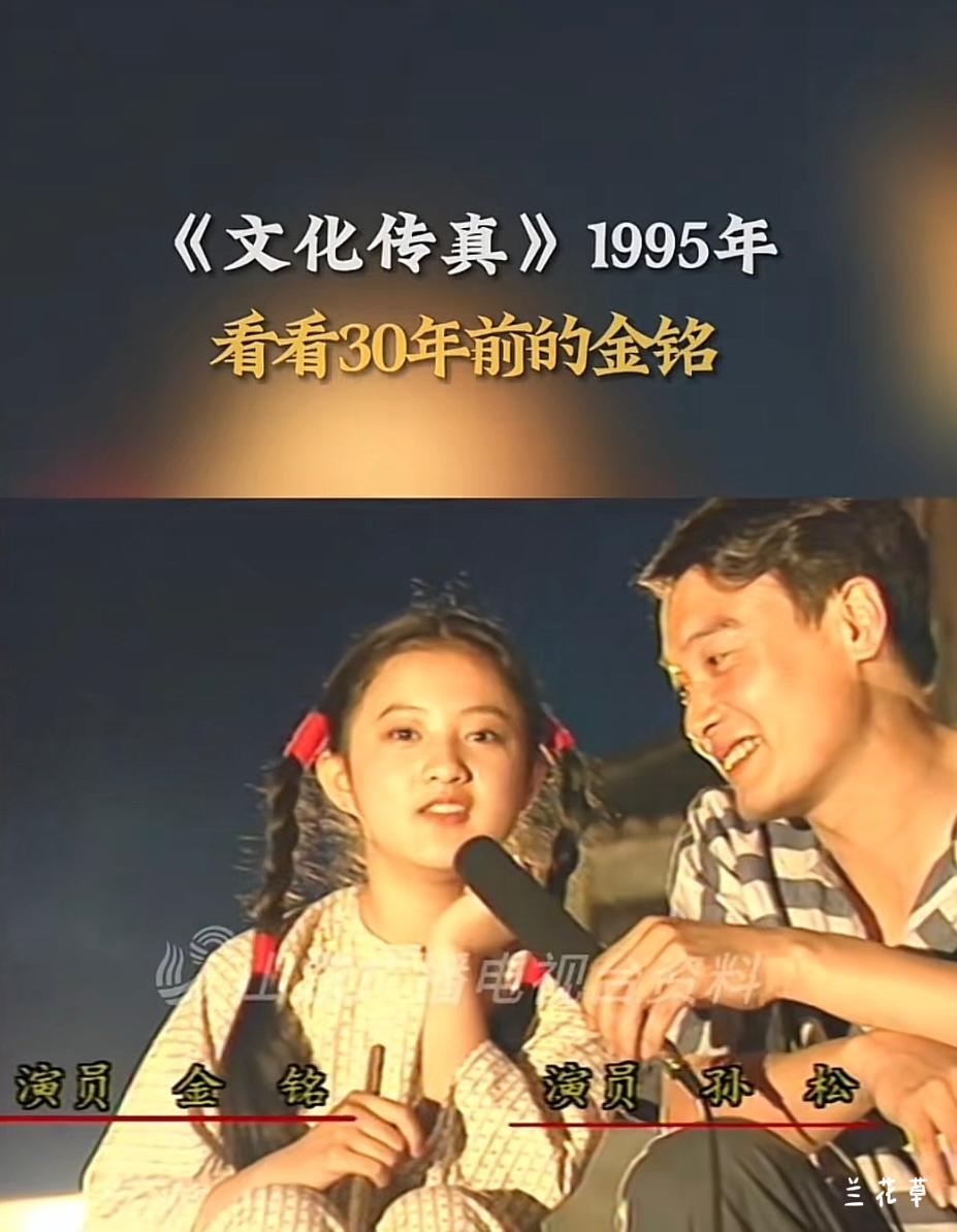 当年的小金铭和“王沪生”孙松在一档节目中。 这是1995年的真实影像,整整30年前的事了。那时的她俊俏可爱,古灵精怪,“小婉君”被她演活了。 孙松拿着话筒在介绍她,她很乖巧地配合着作简单的自我介绍为开场白。 两根小辫子扎着红头绳,嫩白的小脸蛋酿着纯真的笑容,这可爱的小模样倾倒了万千观众。 孙松在介绍她的时候,一脸宠溺的笑。可想而知,那时的金铭多受观众喜爱了。