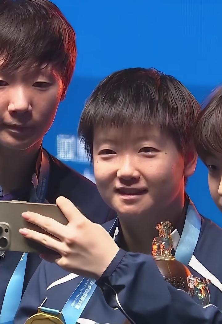 太棒了,太牛了,孙颖莎冠军,王曼昱亚军,蒯曼季军,三朵金花合影留念! 亚洲杯女单颁奖台上,孙颖莎、王曼昱、蒯曼联袂包揽冠、亚、季军,让中国红成为赛场上最耀眼的底色,这一幕燃动全网,热泪盈眶! 当《义勇军进行曲》响彻全场,她们高声合唱,这是属于中国乒乓的荣光,更是刻在国人心中的骄傲! 三面国旗同升,是拼搏的勋章,是传承的力量,更是国乒长盛不衰的底气。巾帼铿锵,不负韶华,国乒姑娘们以汗水浇灌荣耀,用坚守书写传奇,这份热血与荣光,永远为中国而燃!