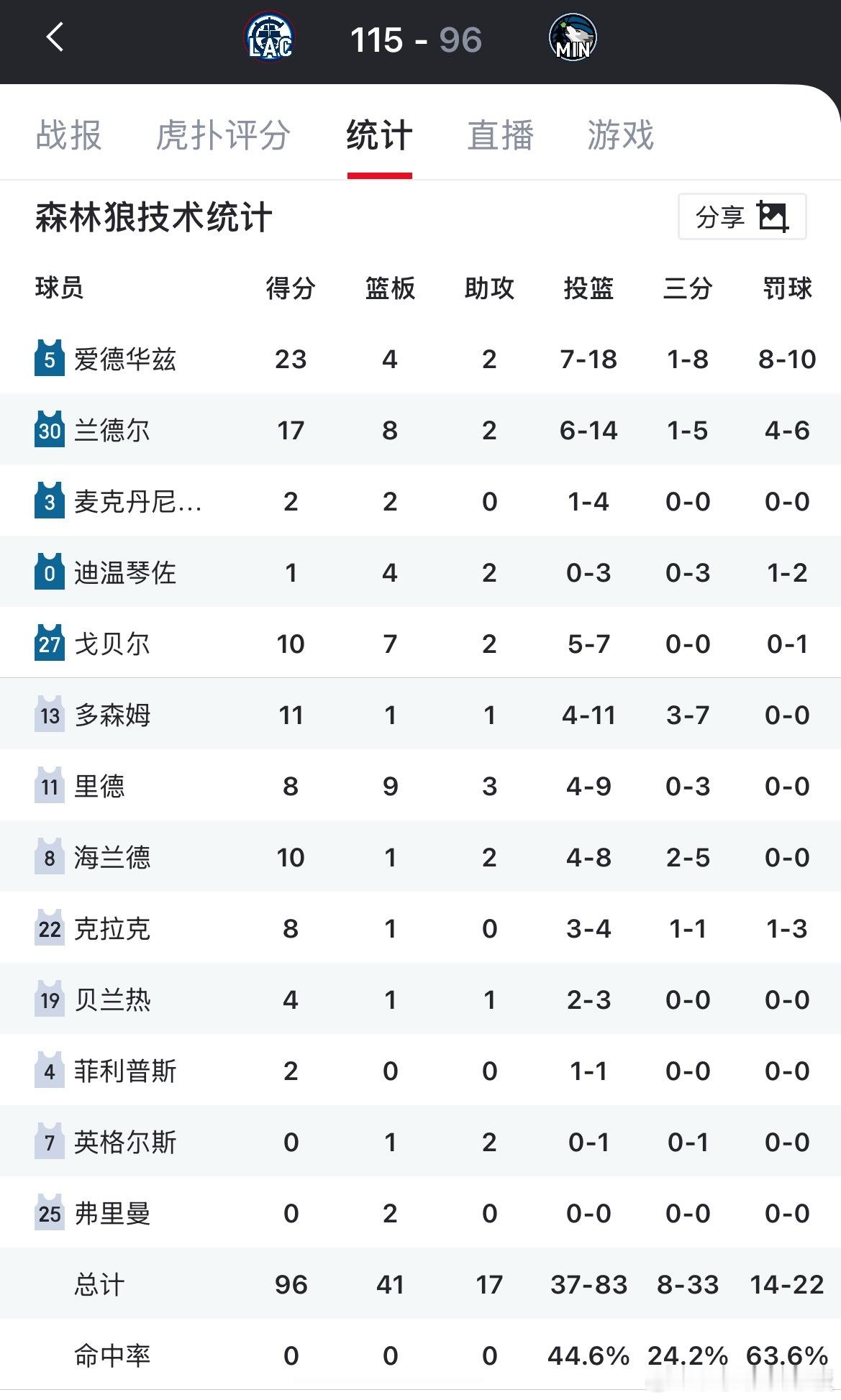 伦纳德轰下41分8板4断,快船客场115-96大胜森林狼!森林狼已落后湖人1.5