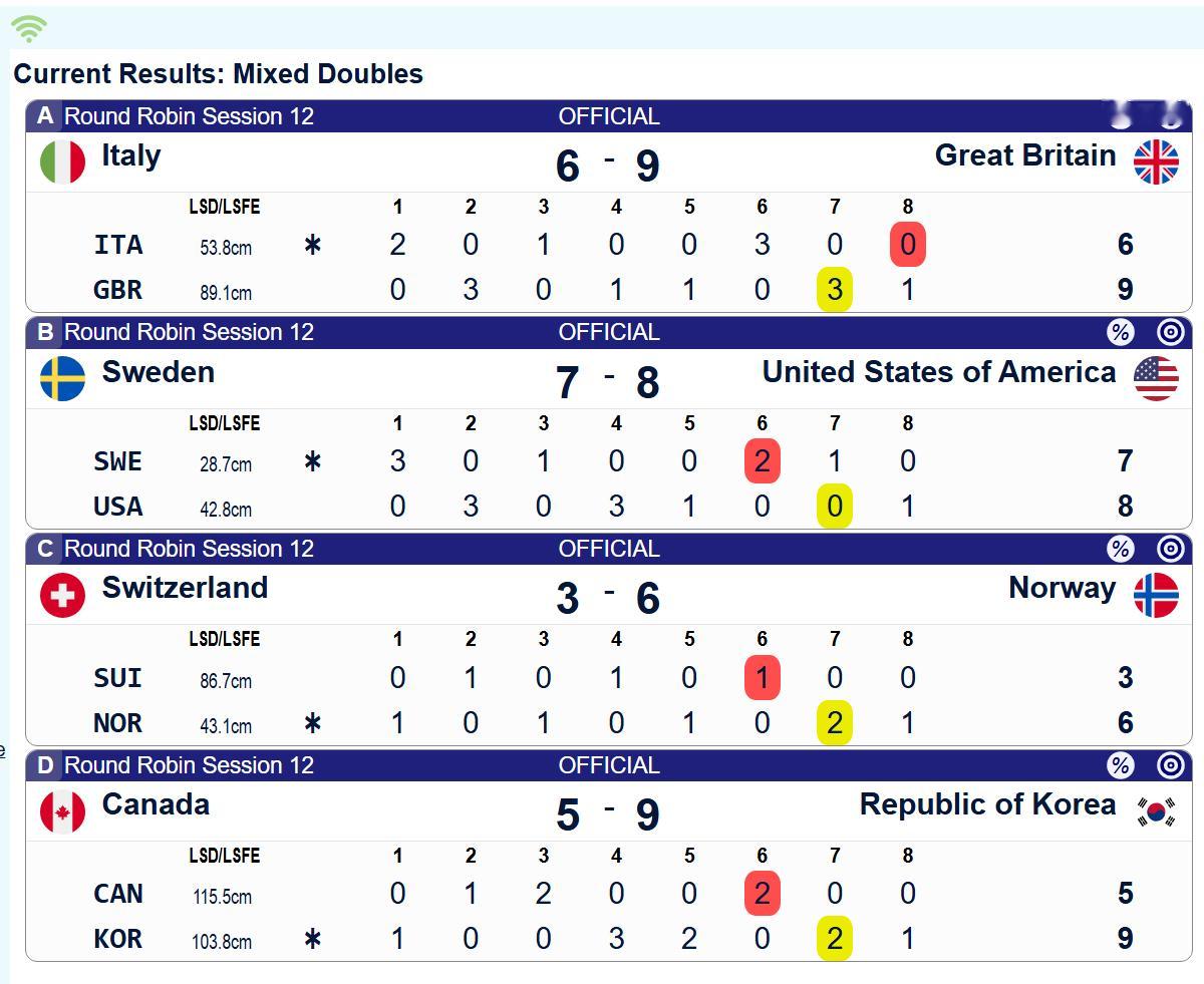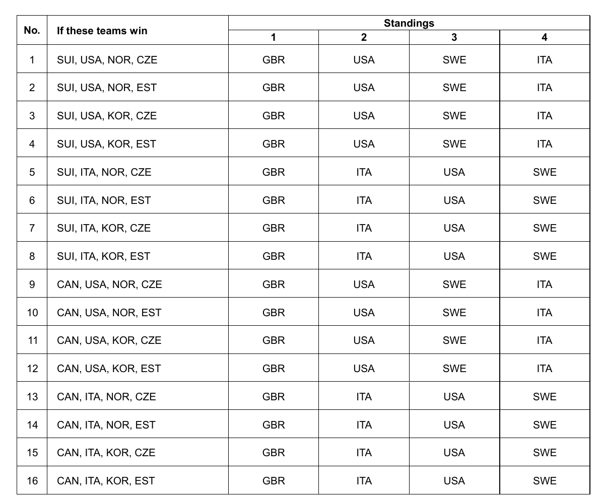 【奥运冰壶】凌晨轮次加拿大输韩国,加拿大五连败无缘前四。前四名也都确定了:英国、意大利、美国和瑞典。英国锁定大循环第一名,美国锁定2~3名,美国英国不会在混双半决赛相遇。